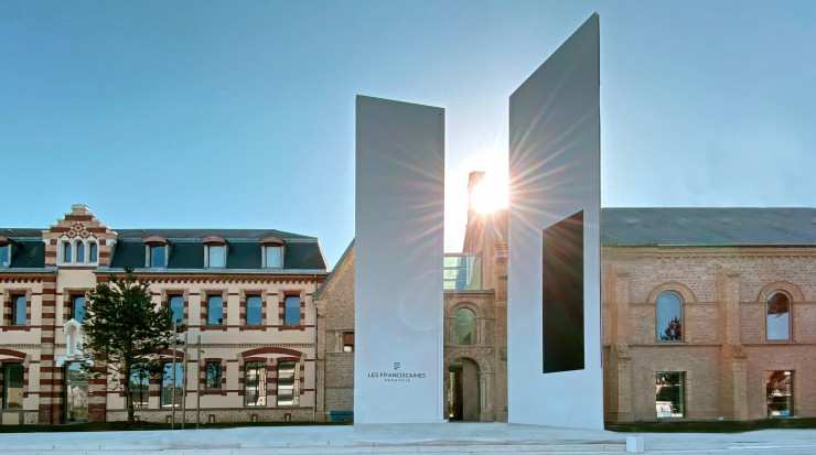 Étonnamment, Deauville ne disposait jusqu’alors d’aucun musée. La station normande avait pourtant inauguré, en 1992, un palais des congrès prompt à accueillir son Festival du cinéma américain (créé en 1975) et quelque 160 autres manifestations annuelles. Désormais, on pourra compter sur Les Franciscaines, un édifice religieux de la n du XIXe siècle que l’architecte Alain Moatti a transformé au terme de six ans de chantier en un équipement abritant à la fois un auditorium, un musée, des salles d’exposition et une médiathèque. « En ville, ne pas démolir est le premier acte écologique. Cette éthique répond à une responsabilité planétaire », argumente l’architecte parisien au sujet de son projet qui se déploie sur plus de 6 000 m2.