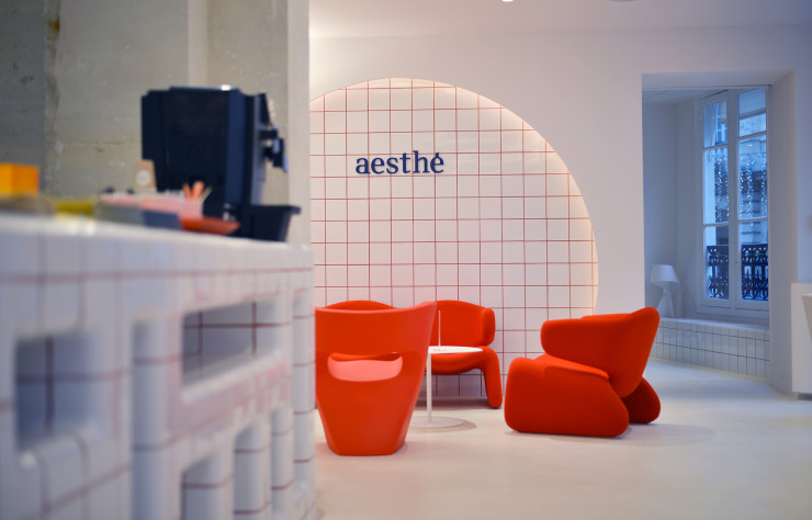 Outre-Atlantique, il n’est pas rare de croiser des cabinets de médecine esthétique aux allures de concept-store. Ça l’est beaucoup plus en Europe. Ainsi, Aesthé avait carte blanche pour imposer sa vision des choses.