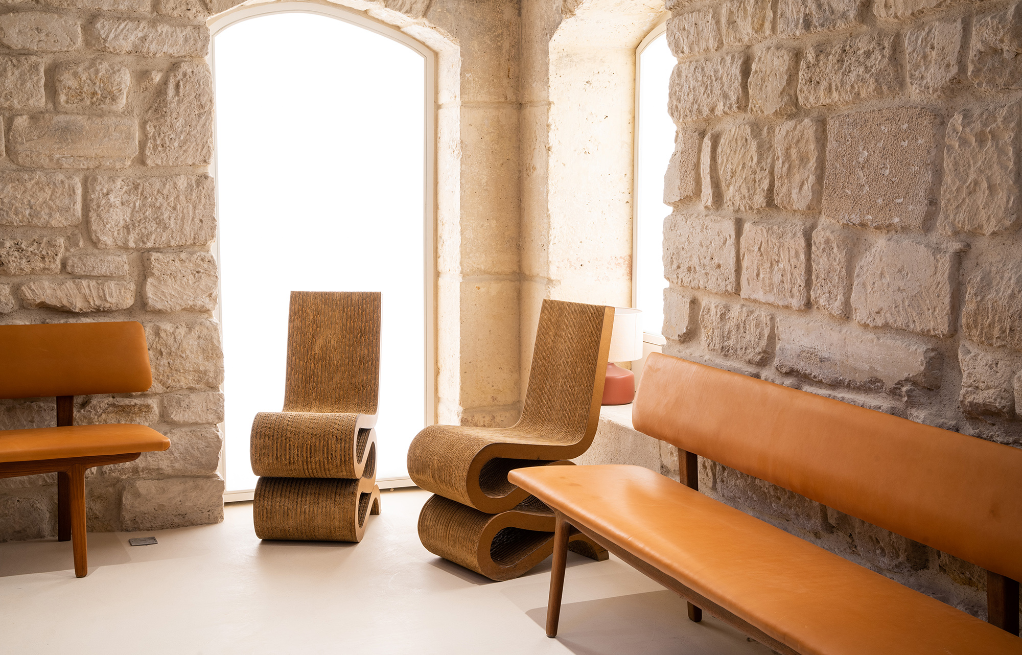 De l’ancien showroom Sentou qui occupait les lieux, on ressent une attraction particulière pour le design contemporain. Des Wiggle chairs de Frank Gehry aux tabourets Bold de Moustache en passant par les assises rouges et dodues d’inspiration seventies, le mobilier fait la part belle aux matières organiques et à la couleur. Dans un écrin épuré — les pierres d’origine ont été grattées et le carreau blanc est un leitmotiv —, ces ponctuations joyeuses confirment la volonté d’Aesthé de se rendre accessible, même par sa décoration.