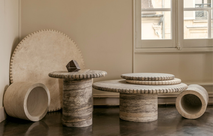 Chaque pièce, fruit d’un travail minutieux d’artisans, reflète un dialogue entre tradition et modernité. À travers un design épuré au service de la matière elle-même, Parsa invite à redécouvrir la beauté essentielle de ces pierres millénaires tout en valorisant un savoir-faire artisanal en voie de raréfaction. Parmi les créations qui ont marqué la rédaction, les tables Bam au plateau en travertin rond dont les sections régulières rappellent la précision horlogère.