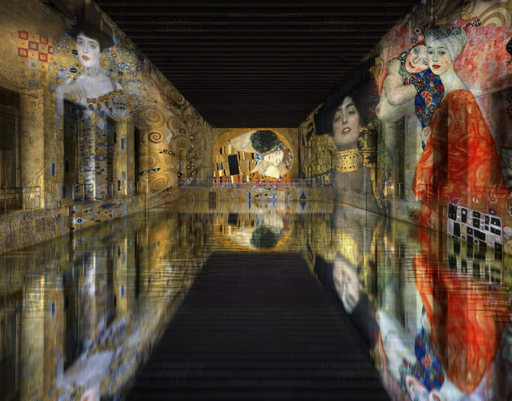 Pendant une quarantaine de minutes, « Gustave Klimt, d’or et de couleurs » alterne ensuite entre les portraits, les paysages et les nus du peintre autrichien. Imaginée par le concepteur d’espaces Gianfranco Iannuzzi, le metteur en scène Renato Gatto, le vidéaste Massimiliano Siccardi et le compositeur Luca Longobardi, l’installation réunit ses plus grands chefs-d’œuvre, du Baiser au Portrait d’Adèle Bloch-Bauer, et de la Danaë à La Fresque Beethoven. Mais l’exposition retrace plus largement un siècle de peinture viennoise, en conviant les fresques mythologiques du Théâtre National de Vienne ou les figures torturées d’Egon Schiegel. Le tout sublimé par les reflets de l’eau et une bande-son rythmée par les airs de Wagner, Chopin, Mahler et Puccini. Du grand art !