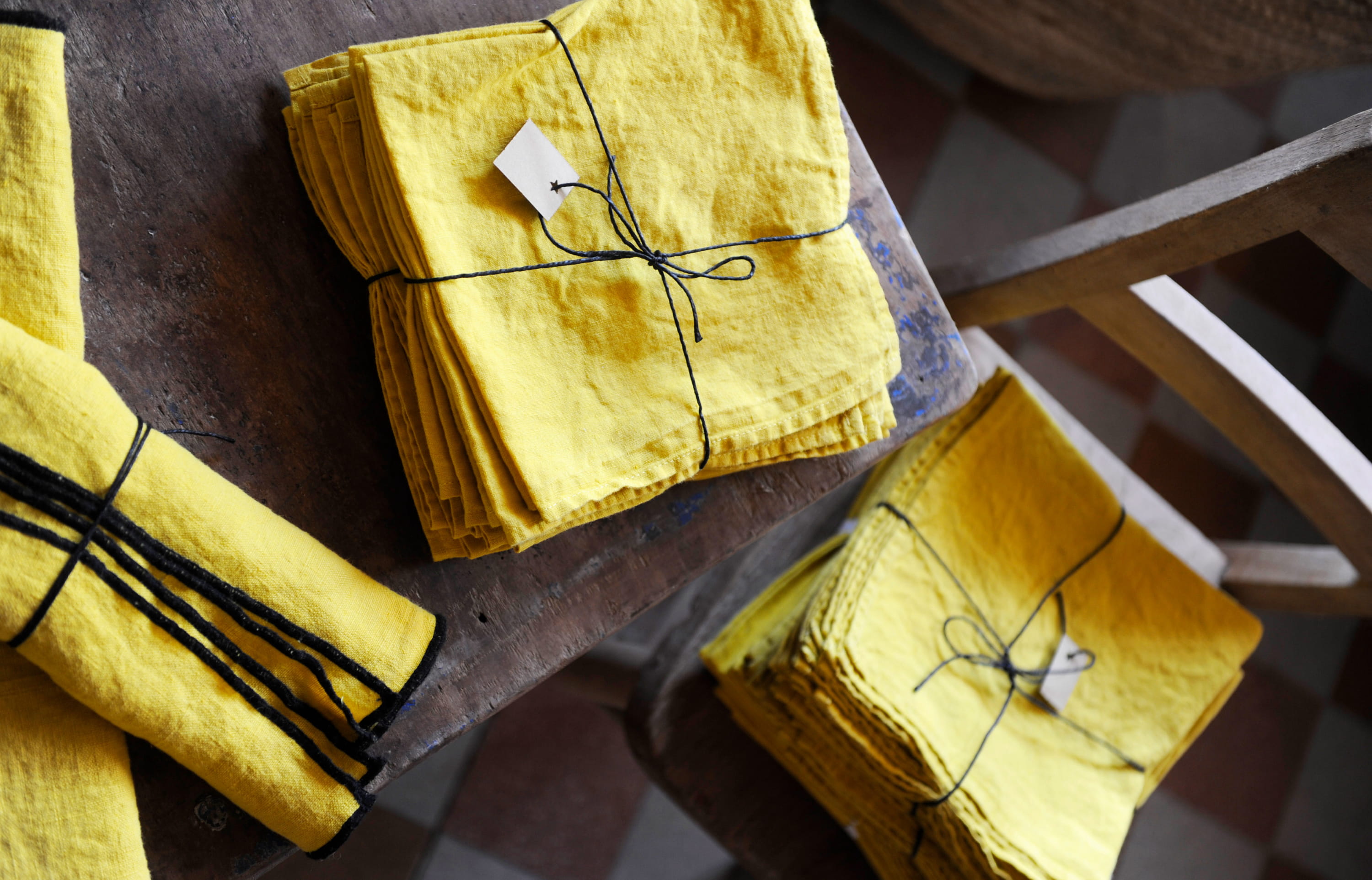 Chez Marie se rencontrent des lits picots (lits militaires) bruts, des objets neufs – notamment des poteries de la manufacture de Digoin et d’autres artisans – et quelques trésors d’époque. Mais sa spécialité, ce sont les objets qu’elle relooke complètement selon ses envies : de longues patères qu’elle tronçonne et redimensionne ou des tissus anciens qu’elle transforme en cover sofa, surmatelas et housses de coussins, tous cousus dans la région, mais aussi des créations d’autrefois qu’elle adapte à notre vie contemporaine.