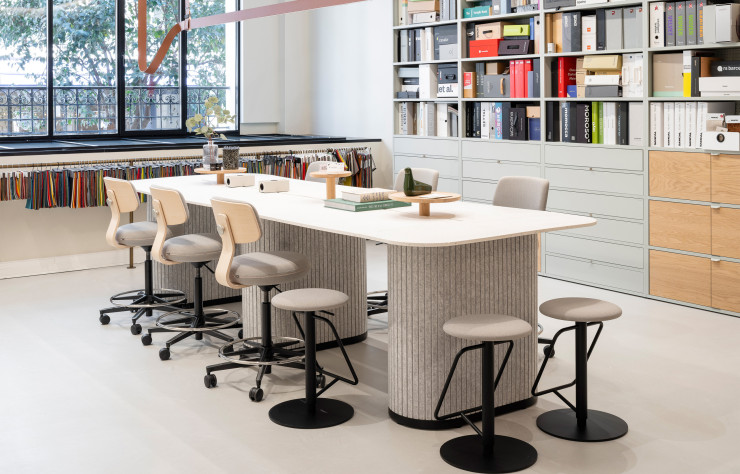 « Aujourd’hui, plus encore qu’avant, les sociétés ont la nécessité de créer des bureaux inspirants où les employés se réunissent pour vivre la culture d’entreprise et avoir plaisir à être ensemble, indique Karin Gintz, responsable de Vitra France. Ils ont également besoin de pièces confortables, qui apportent davantage de support et de choix qu’en restant à la maison, ce qui donne du sens au fait de venir exercer son activité. Les espaces sociaux et collaboratifs prennent plus de place avec le travail hybride, les taux d’occupation varient et, par conséquent, les anciens bureaux individuels sont aussi plus souvent partagés. »