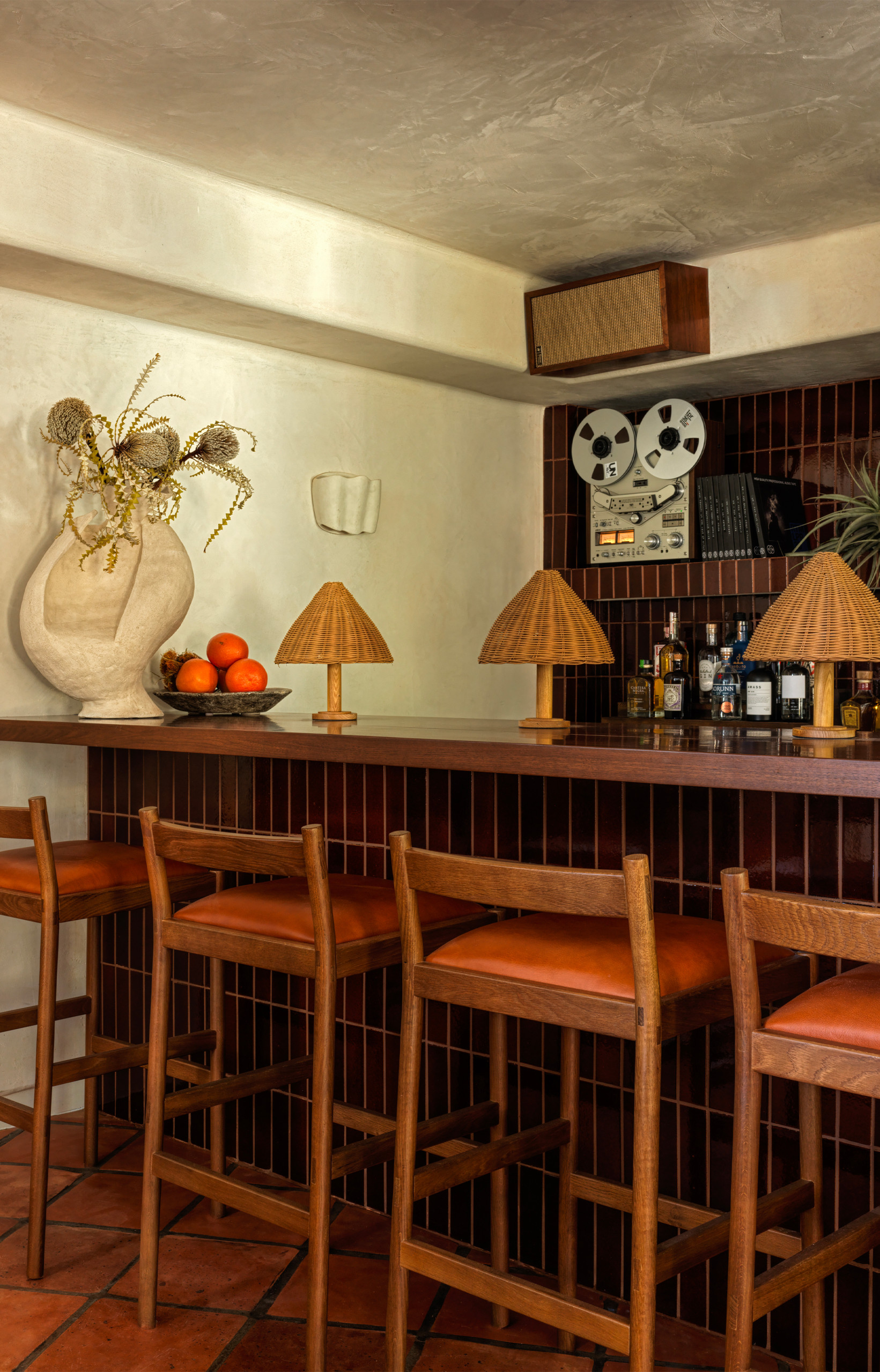 Cécilia donne le ton du nouvel aménagement intérieur. Une subtile alliance de formes sculptées et de textures organiques, comme modelées par les douces vagues de l’océan. Les pièces conçues sur mesure sont légion, des carreaux d’argile fabriqués à la main aux formes sinueuses du mobilier, clin d’œil au travail artisanal des shapers locaux, les fabricants de planches de surf.