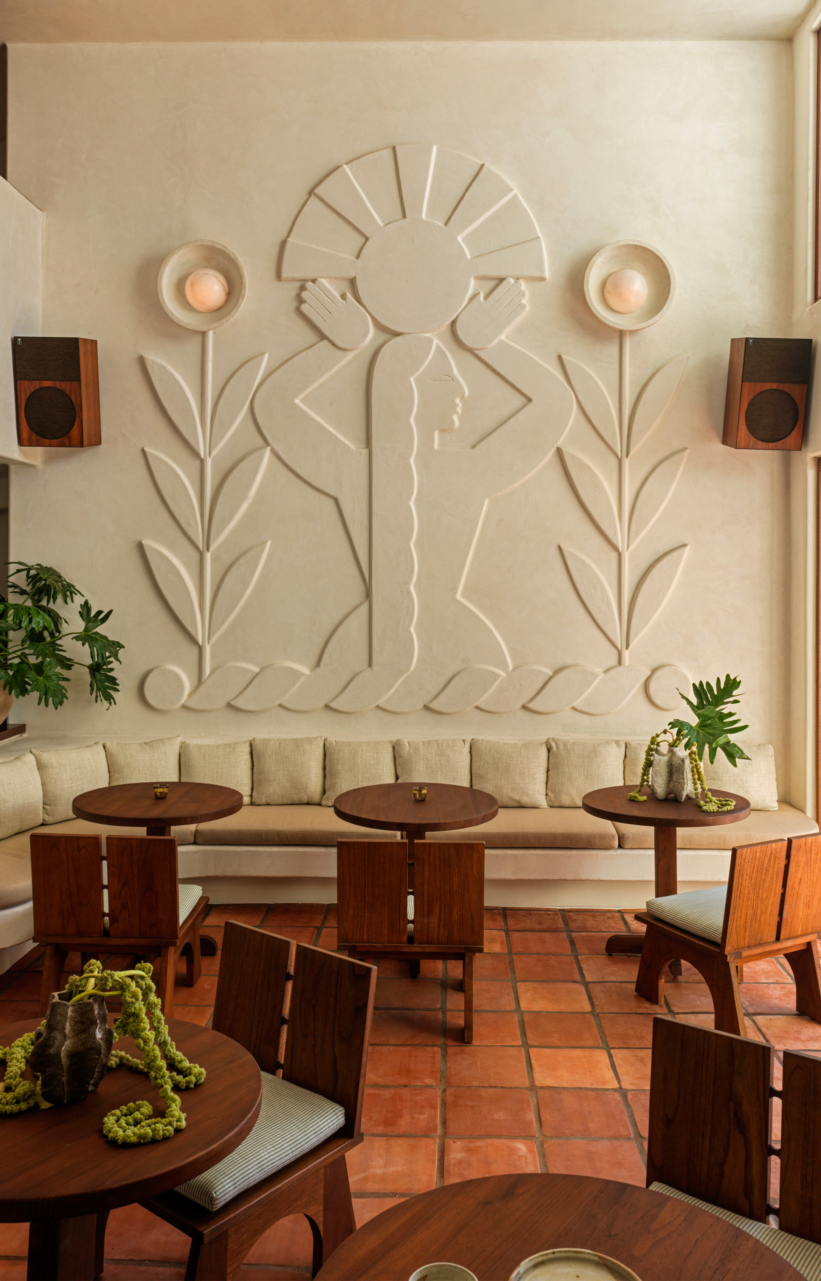 « Nous avons ressenti le besoin d’incarner le nouvel esprit des lieux, se souviennent Lucia Bartholomew et Cailey Lambur, les fondatrices de l’agence d’architecture d’intérieur Electric Bowerys à l’origine de la renaissance de l’hôtel Casa Loma. En collaboration avec le studio graphique Land, qui s’est occupé de la direction artistique globale, nous avons créé une divinité qui représente une certaine énergie du bien-être et la beauté mythique de la mer. » Cécilia prend ainsi corps sur une fresque murale en plâtre, accueillant les invités dès leur entrée, plongeant chaque jour avec délectation dans les rayons du soleil qui traversent le hall…