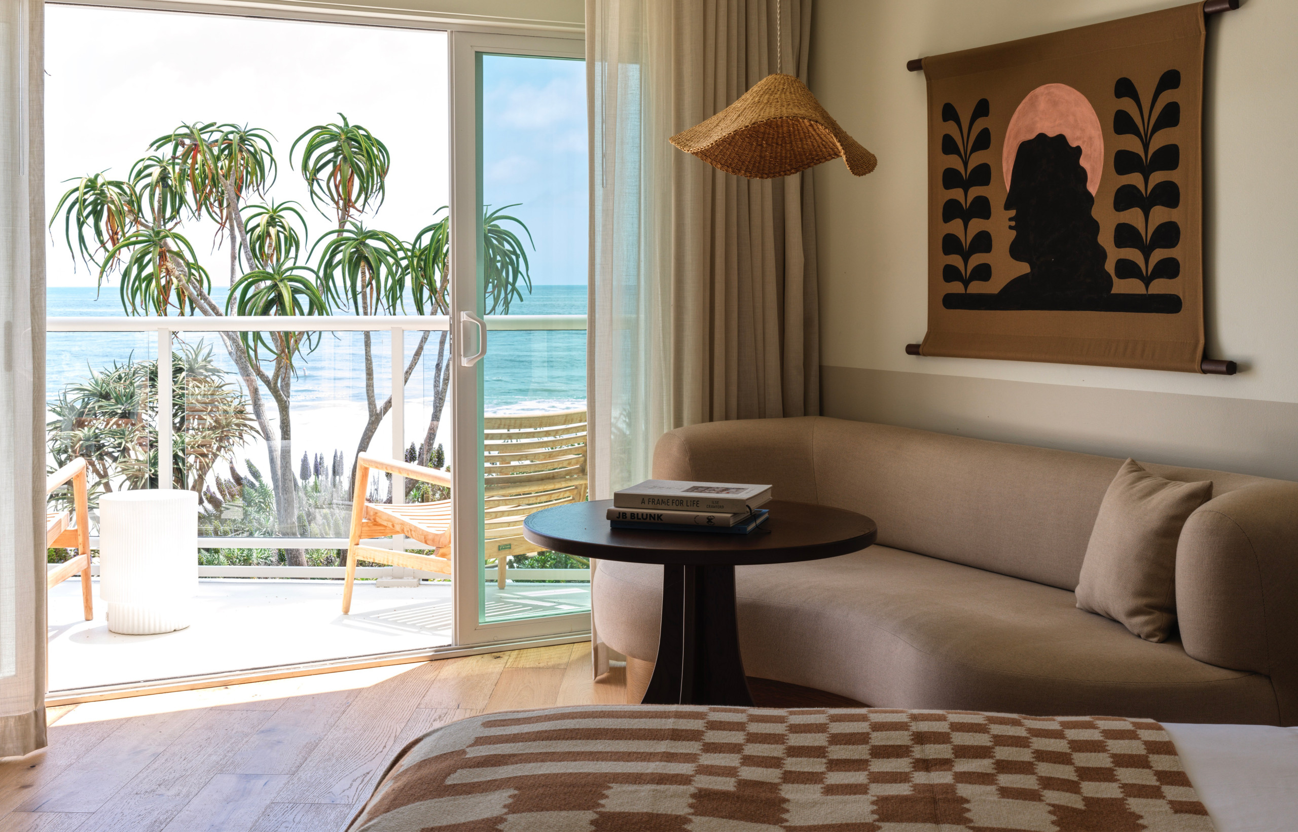 La connexion avec Laguna Beach – ville côtière qui a accueilli la contre-culture naissante des années soixante et s’est vue depuis lors pollinisée par une communauté éclectique, sensible au design et à un certain art de vivre – est venue naturellement et se ressent dans chaque recoin de l’hôtel. Lucia et Cayley, les architectes, racontent : « Avant la rénovation, les intérieurs étaient typiques des hôtels de bord de mer californiens. Confortables, mais sans lien avec l’héritage créatif de Laguna Beach. Nous avons donc voulu valoriser ce patrimoine en nous inspirant des couleurs du sable, de l’eau et en créant des espaces qui reflètent à la fois la beauté sauvage de l’océan et l’esprit de la ville, tourné vers l’artisanat. »