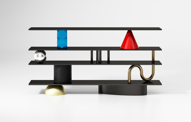 Pièces maîtresses de cette nouvelle collection, les étagères Schnickschnack intriguent autant par leur nom que les éléments qui dissimulent leur structure. Du cône au cylindre en passant par un parallélépipède et quelques formes libres, ce joyeux répertoire résume à lui seul la collection, a la fois simple et décomplexée.