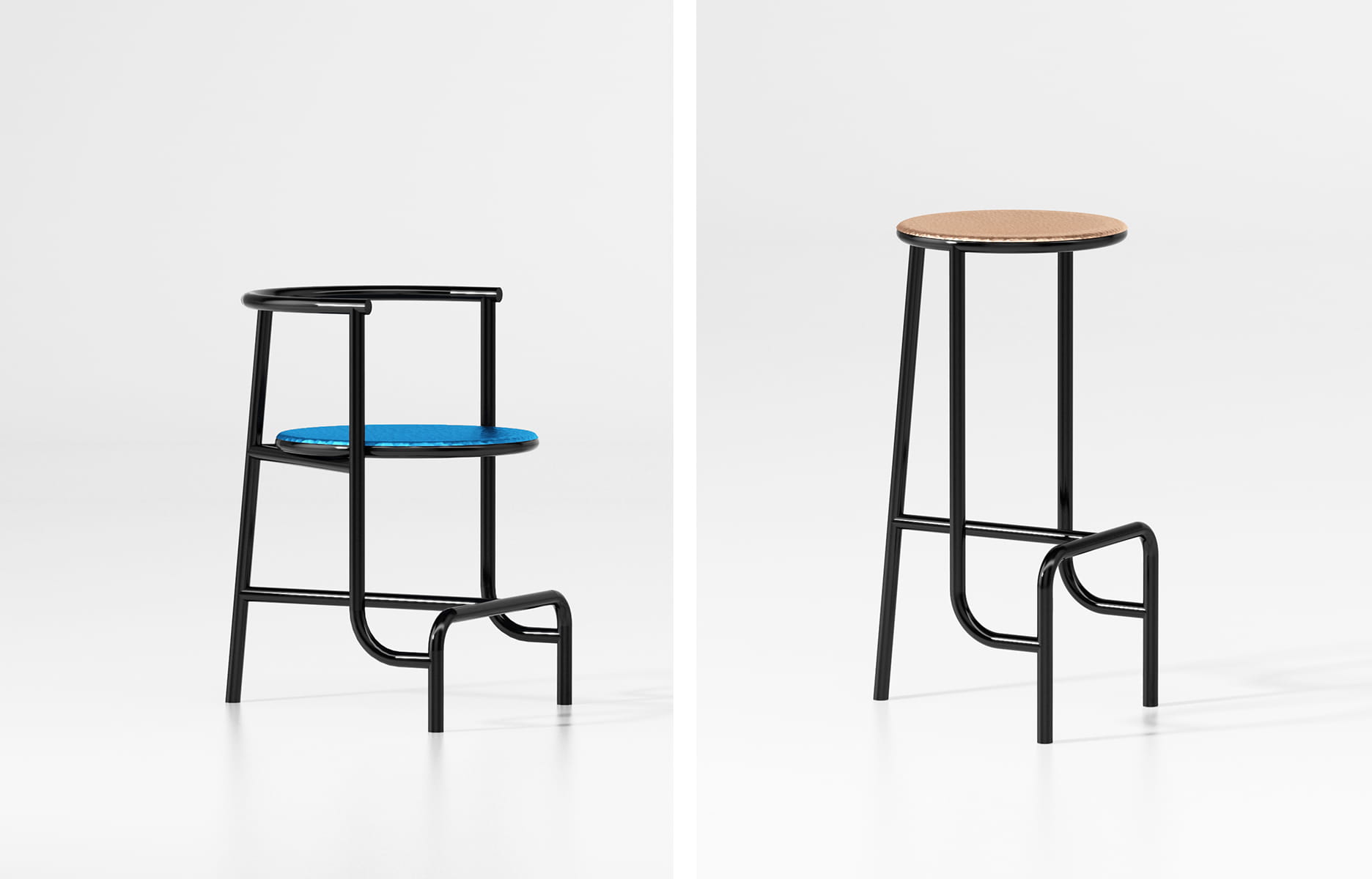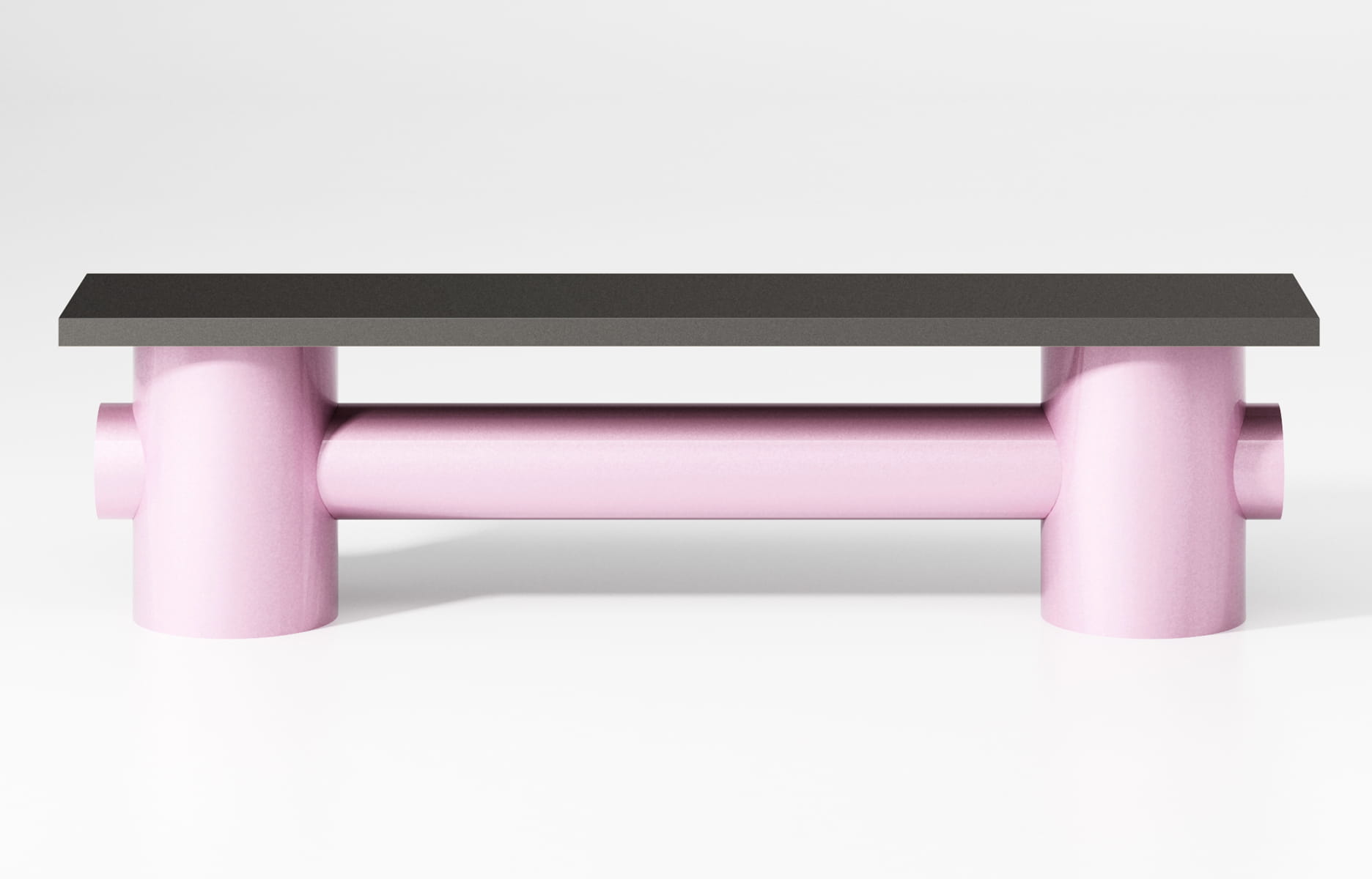 Formé en 2010, le duo parisien s’est notamment entouré du designer suédois Fredrik Paulsen, auteur du banc et de la table basse Rör. En acier laqué rose ou en laiton brossé, leurs finitions contrastent avec une simplicité formelle qui irrigue toute la collection. L’Américain Paul Loebach juxtapose ainsi la masse, la ligne et la surface dans le dessin de la table PT01, tandis que Fabien Capello signe des structures « à la fois étonnantes et rationnelles » pour supporter les assises Tubo.