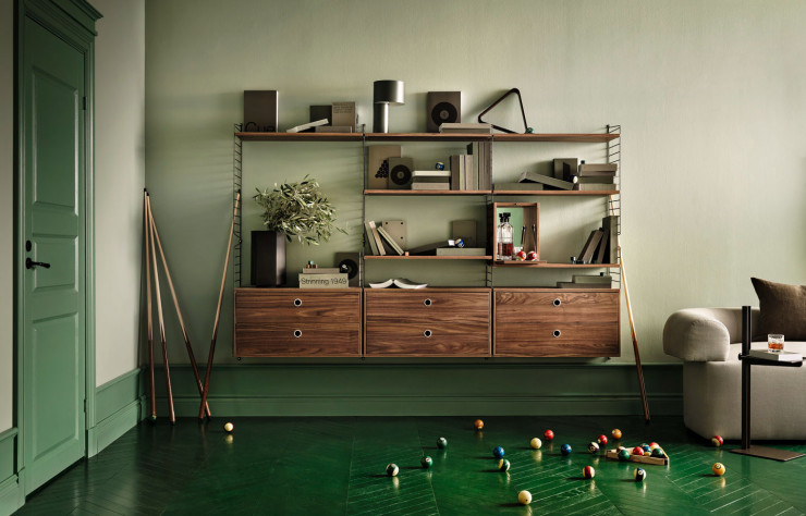 Dans la Suède de l’après-guerre, le couple formé par Nisse et Kajsa Strinning, tous deux architectes et designers, entre dans l’histoire du design scandinave avec String, un système d’étagères. Ah bon ? Oui, car il faut savoir qu’au début du XXe siècle, beaucoup de gens en ville étaient fraîchement arrivés de la campagne suédoise. Les intérieurs urbains étaient pauvres en meubles. Il a même existé des manuels, plus pratiques que lifestyle, pour souffler à chacun le meilleur endroit pour poser une table chez soi.