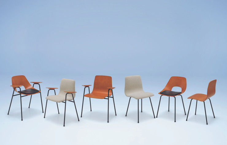 Chaises, banquette, table basse, buffet, étagère et luminaires… en éditant aujourd’hui le mobilier de Pierre Guariche, Cinna mise effectivement moins sur la nostalgie d’un style qu’elle ne parie sur sa modernité. Si le designer fait partie de la mémoire collective hexagonale – stations de ski, magasins ou institutions publiques… –, sa pertinence vient-elle aussi de son parcours ?