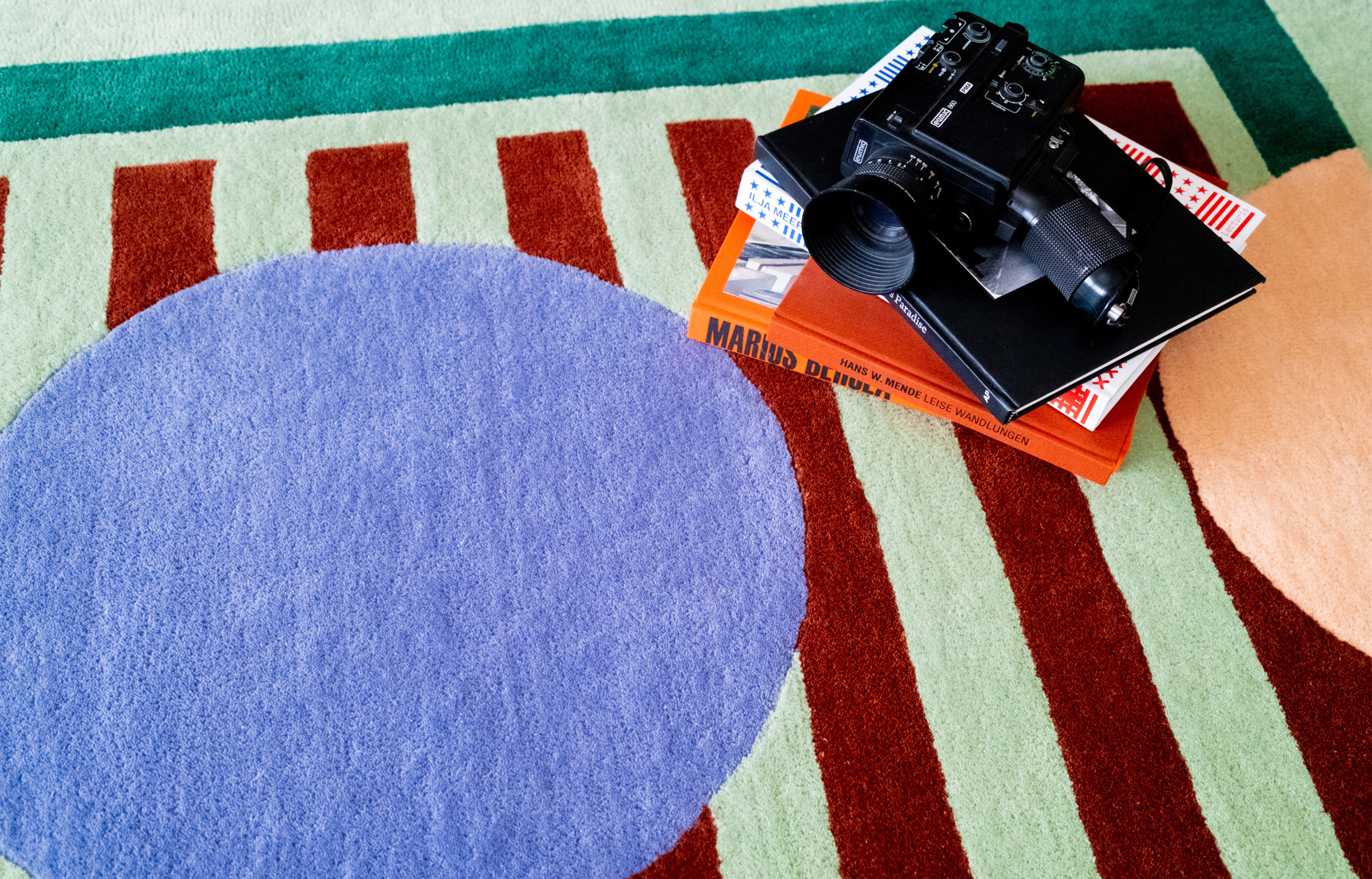«Je m’inspire un peu de tout : la mode, la nature, les saisons … L’époque des années 1970 m’anime énormément comme le style Bauhaus ou Memphis.» ajoute Lavinia. Orange, rouge, rose, vert sont autant de notes colorimétriques qui se juxtaposent dans les œuvres de ColorTherapis, représentant tantôt le soleil levant avec le tapis Sunrise, tantôt une balade parisienne avec son coussin Paris La Seine, produites en série limitée.