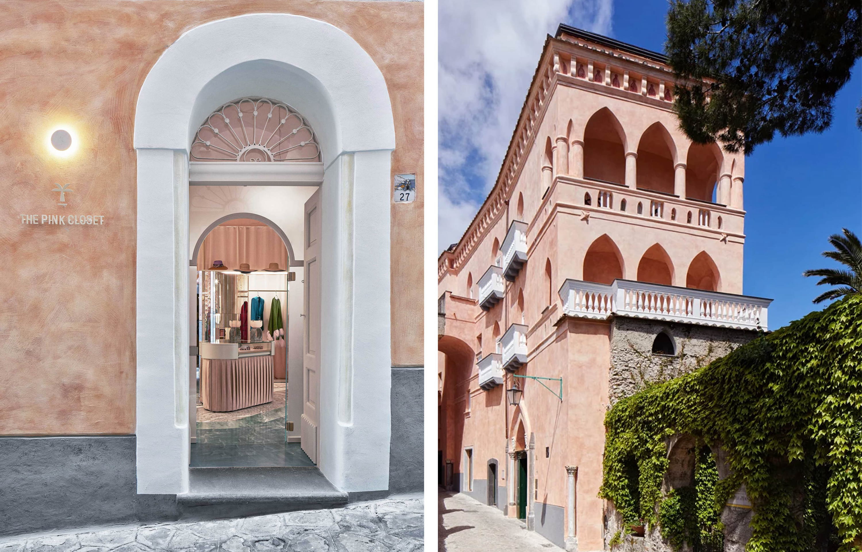 D’une installation réalisée pour Fendi au showroom milanais de Sergio Rossi, Cristina Celestino semble apprécier toutes les nuances de rose. Du moins, tant qu’elles sont subtiles et sophistiquées, comme à l’intérieur du bien nommé Pink Closet. Dédié au vestiaire féminin, ce showroom de mode vient d’ouvrir ses portes dans une annexe du Palazzo Avino. Un hôtel cinq étoiles dont les 33 chambres et dix suites occupent une villa historique, perchée sur les falaises de Ravello depuis le XIIe siècle.