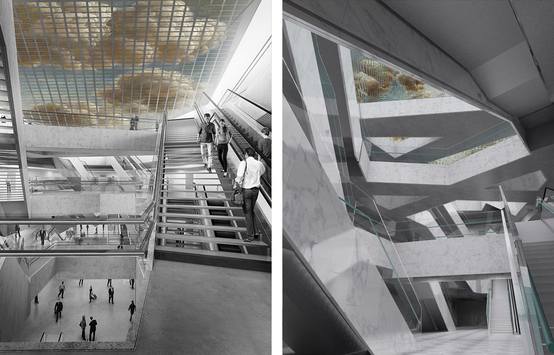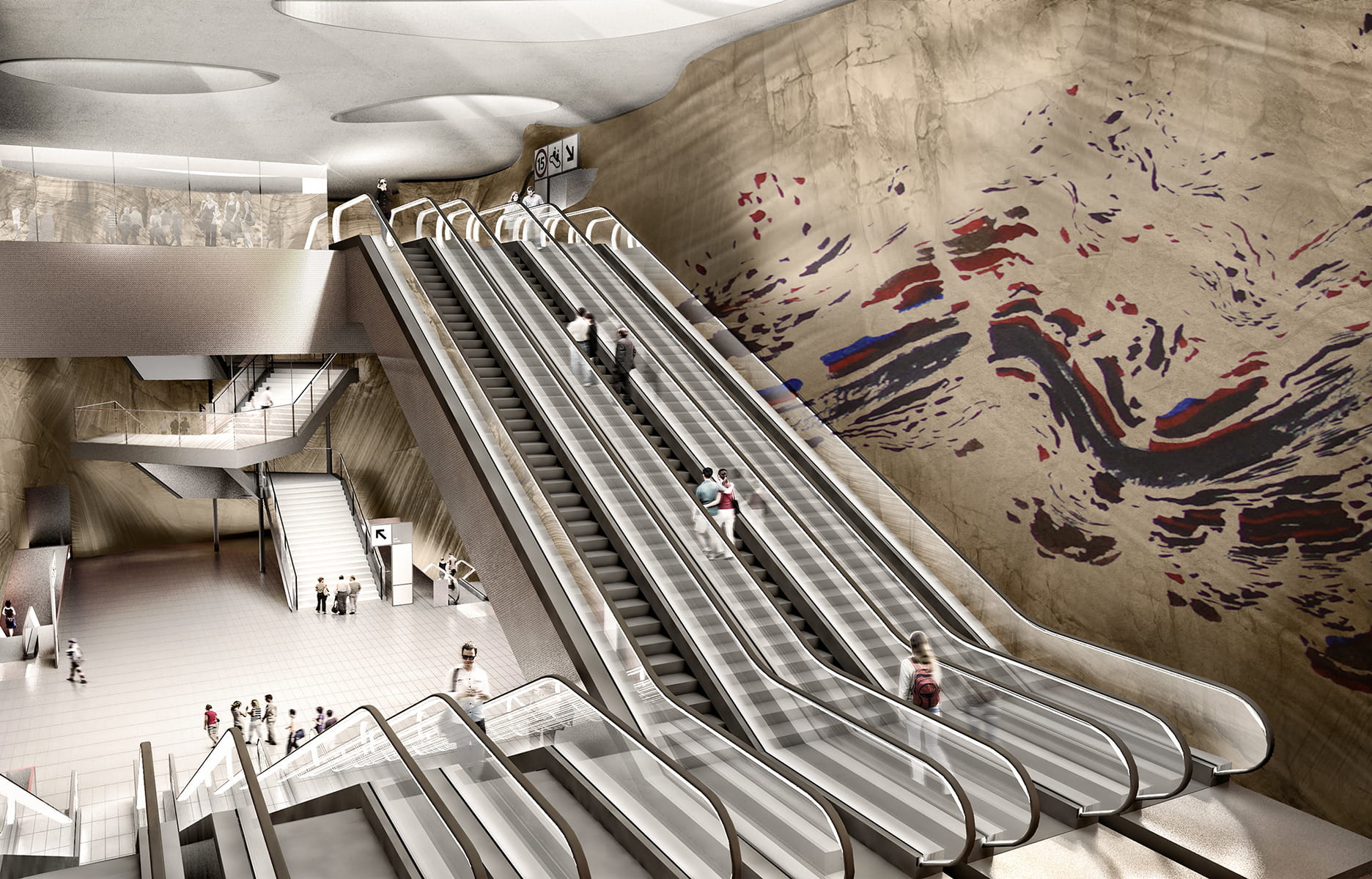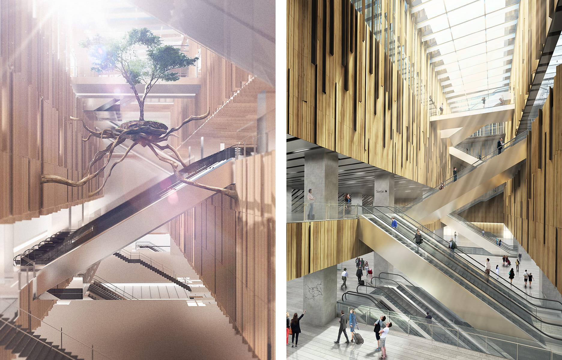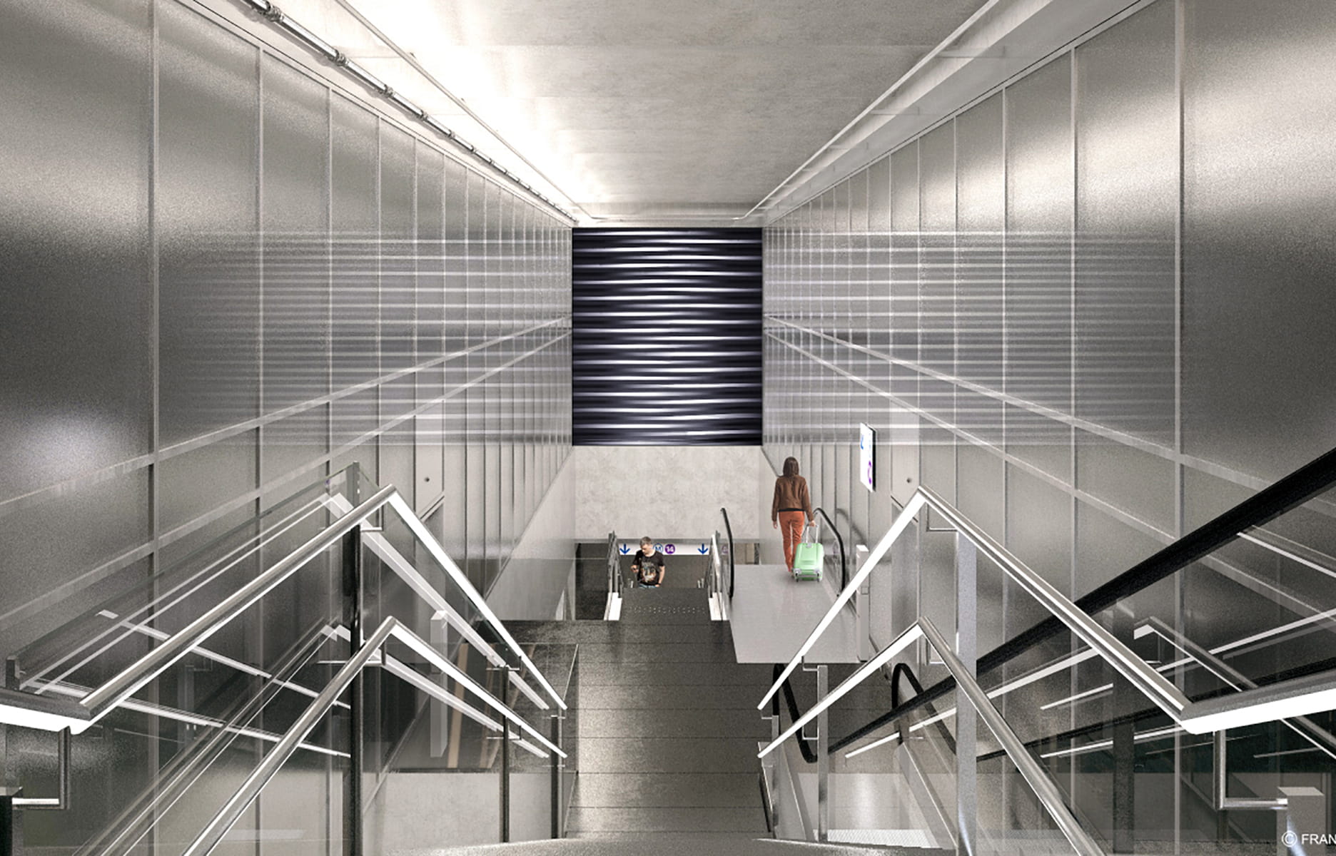 Auteur de plusieurs gares, Jean-Marie Duthilleul s’offre pour l’occasion des partenariats avec Fabrice Hyber et Daniel Buren. Si aucune image de ces collaborations n’a encore filtré, il y a fort à parier que ce dernier réitèrera ses performances déjà réalisées au Grand Palais et à la Fondation Louis Vuitton, au vu de la verrière qui doit chapeauter la station de Sevran-Livry. A l’extérieur, comme sur tous les parvis des 68 gares, c’est à l’artiste Thierry Boutonnier qu’il revient cette fois de s’associer avec l’agence Ferrier Marchetti.