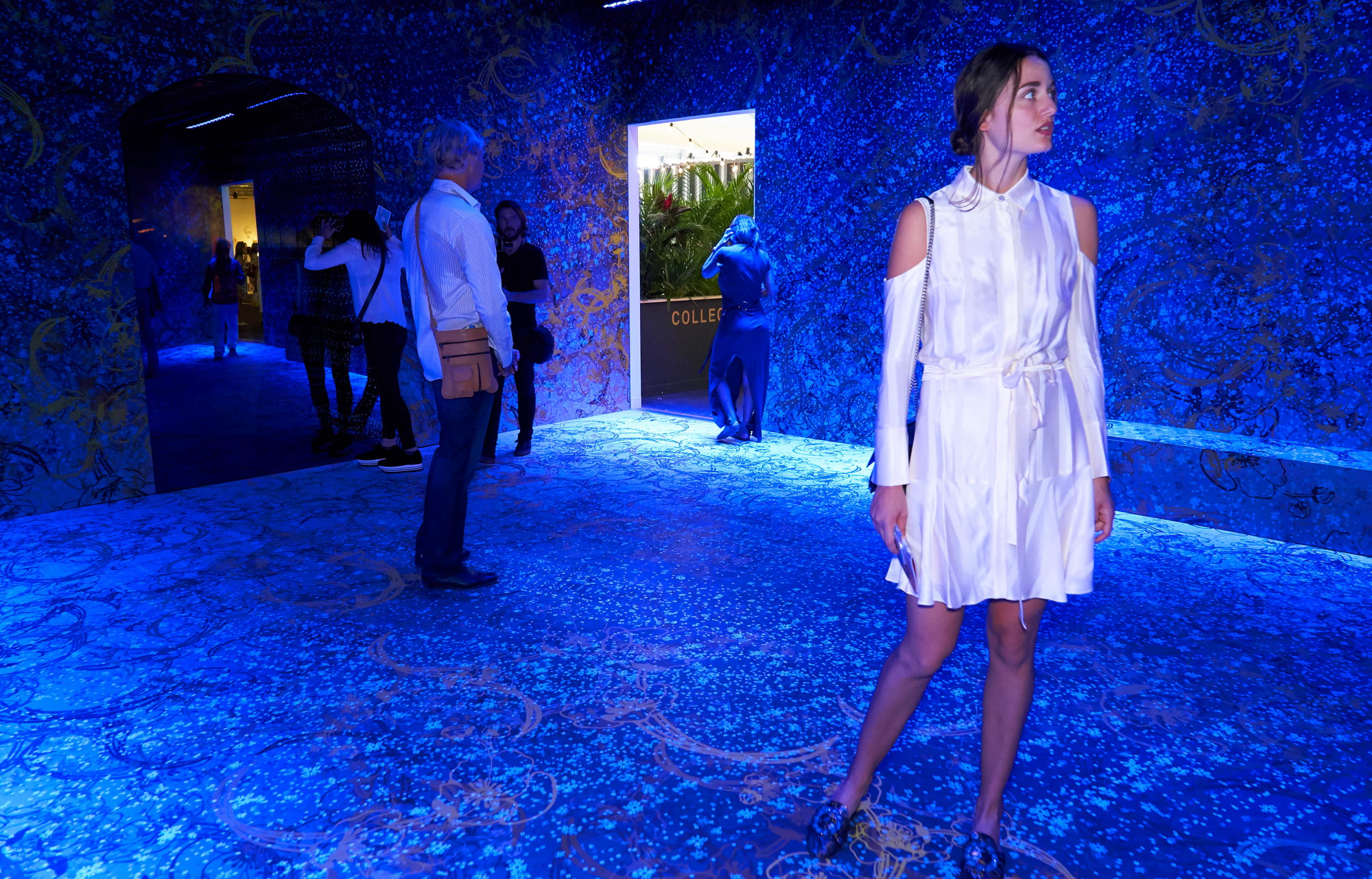 La prestigieuse maison de champagnes a confié à Luftwerk le soin de livrer une version contemporaine de son imagerie Art nouveau. Le tandem d’artistes originaire de Chicago a imaginé une installation numérique dans laquelle les motifs créés par Emile Gallé ont été déconstruits et reproduits aux murs. Des gerbes de couleurs jaillissent de projecteurs pour révéler ces dessins et les mettre en mouvement. Et un système de miroirs permet de démultiplier les dimensions de la pièce. Une vision extravagante qui colle bien à Miami.