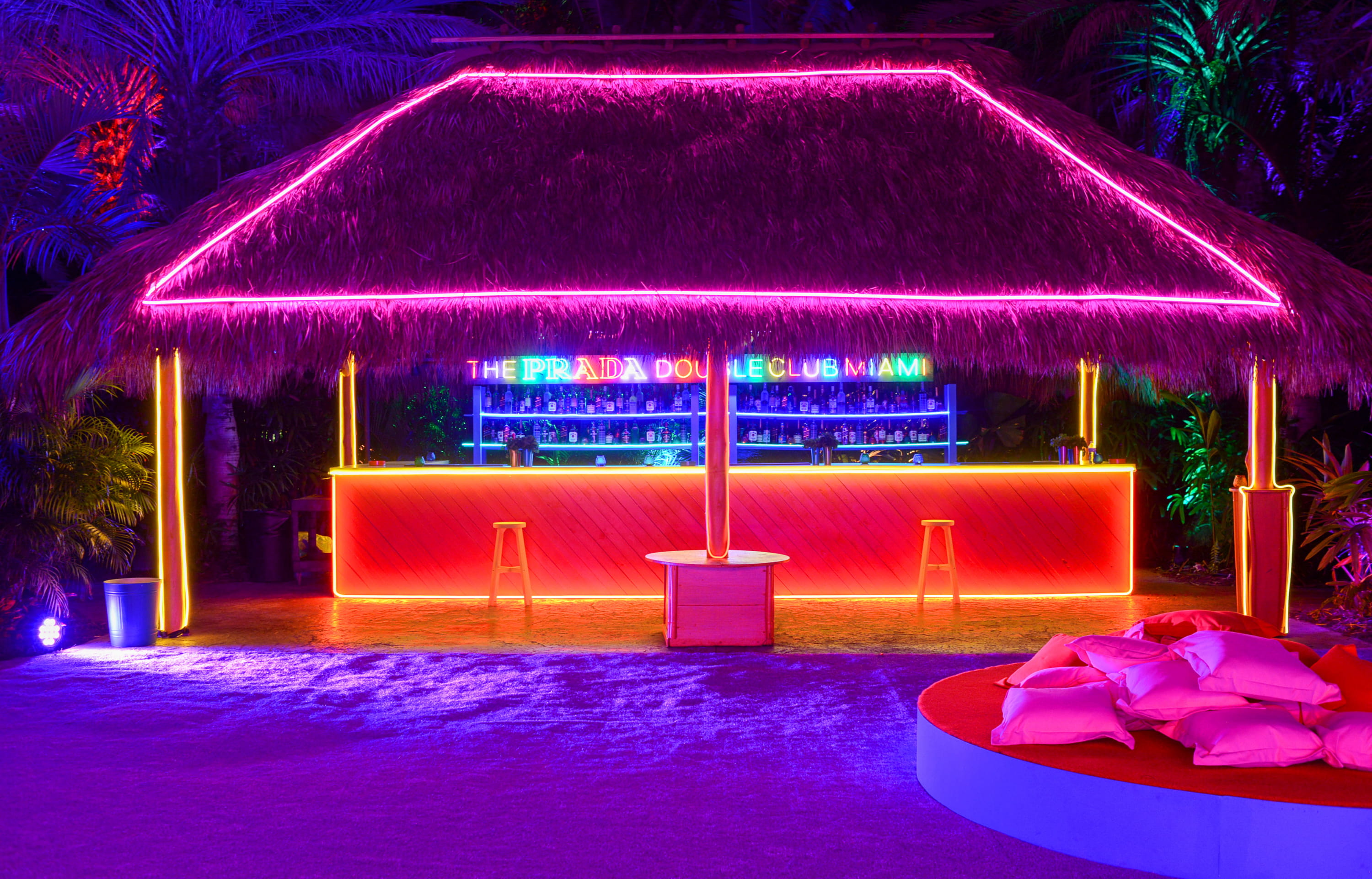 « Les foires d’art sont des fêtes qui se succèdent, où l’art est visible mais ne constitue pas le centre des choses », affirmait Gaetano Pesce dans une interview en 2014. L’installation The Prada Double Club Miami de l’artiste allemand Carsten Höller ré-ouvre le débat. L’invité de la Fondazione Prada a installé un vrai dancefloor monochrome à la Dan Flavin. Il est contigu à un lounge d’extérieur d’inspiration plus tropicale et pourvu de sièges d’extérieurs. Ici, les DJs performent chaque soir et le gotha de la hype a répondu présent : côté mode, Virgil Abloh ou Jonathan Anderson et, côté chanson, Rita Ora ou Ricky Martin, tous reçus par Miuccia Prada. L’artiste Carsten Höller s’était, lui, glissé dans la peau de son alter ego : le critique Baldo Hauser, spécialiste de… Höller.