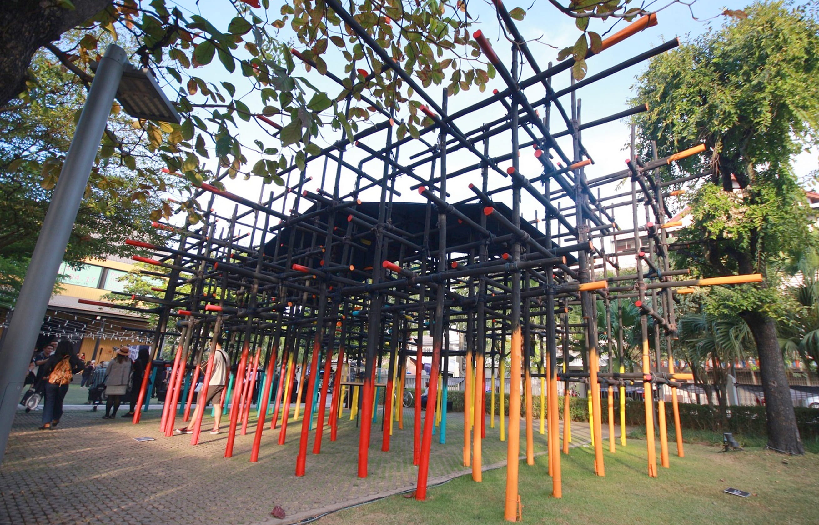 Réunie par la spécialiste du design et consultante Chloé Braunstein, leur exposition « Transfer(s) » proposait 18 pièces en bambou, laque, céramique et indigo, basées sur les savoir-faire du pays. Sarngsan Na Soontorn, professeur à l’Ensci, a aussi convié ses étudiants à se pencher sur ces techniques ancestrales pour réaliser des équipements de physiothérapie lors d’un workshop en collaboration avec l’hôpital de Chiang Mai. Un thème dont se sont également emparées les équipes de l’université Aalto à Helsinki et de la faculté des beaux-arts de Chiang Mai, qui ont réfléchi à l’amélioration du cadre de vie des personnes âgées et de leur relation avec leur voisinage.