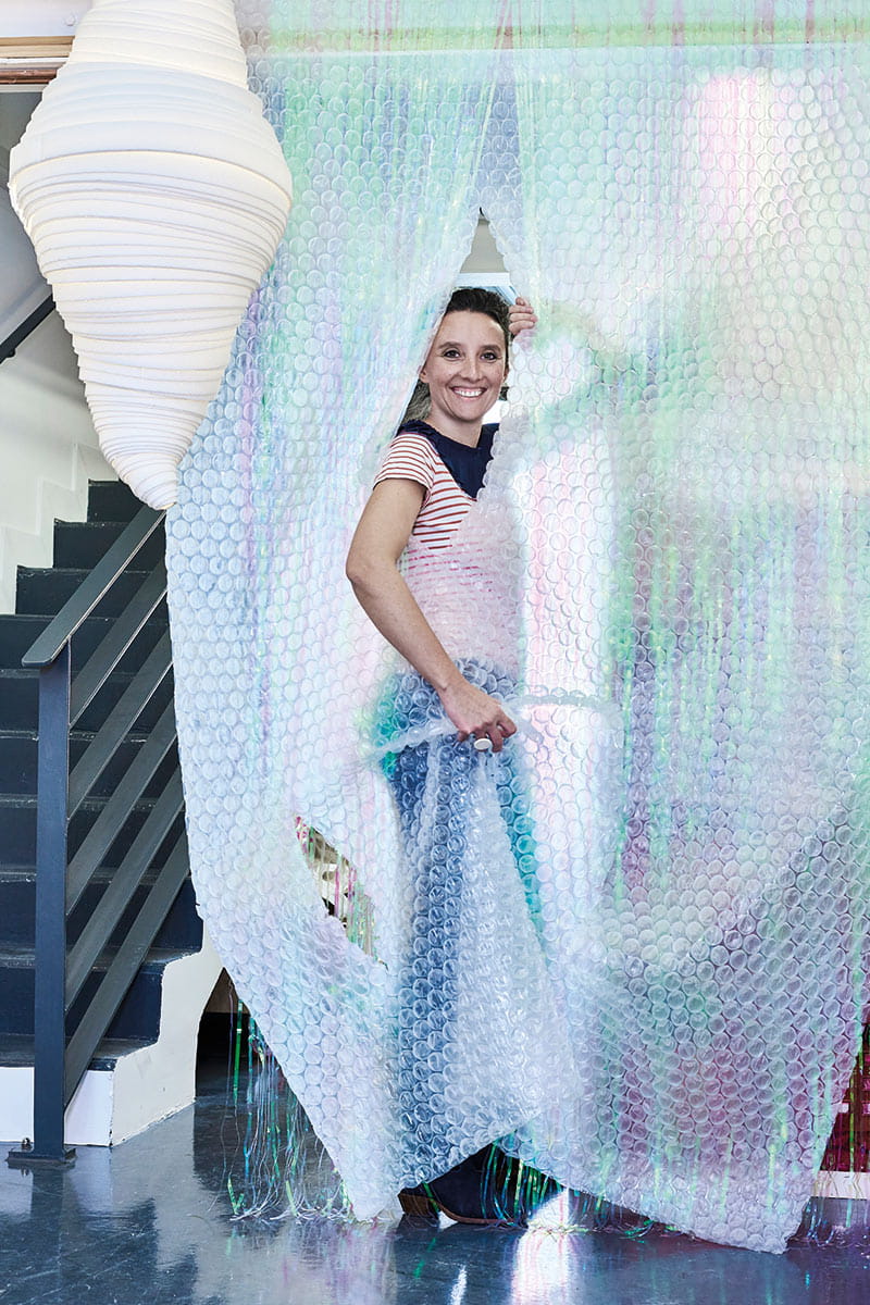 La designer Margaux Keller, basée à Marseille depuis 2012, déplace l’alpha et l’oméga du design, à savoir la fonctionnalité et l’esthétique, vers une troisième injonction, essentielle selon elle : l’émotion. Celle qui aménage des espaces commerciaux et scénographie des boutiques ou des restaurants entend concevoir, sous son propre nom, des objets qui diffusent de la bienveillance. Car la bienveillance est plutôt du côté de l’éthique. Concrètement, cela donne la collection de sièges « Nacre » pour Boqa, en forme de coquillage tressé pour s’asseoir au soleil, ou la lampe à poser Planier, petite sphère qui semble comme remplie d’anémones de mer.