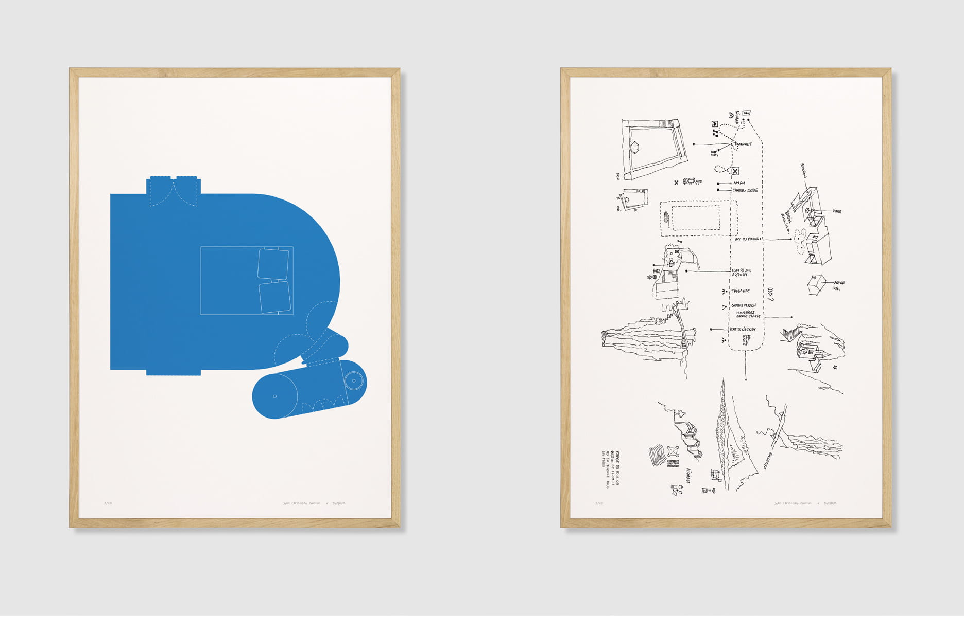 Proposées sur le site de Desplans entre 70 à 1 000 €, les œuvres, éditées en douze ou vingt-quatre exemplaires, sont disponibles au format A3 ou A2, livrées dans un cadre en chêne naturel conçu par le studio de design danois Moebe.