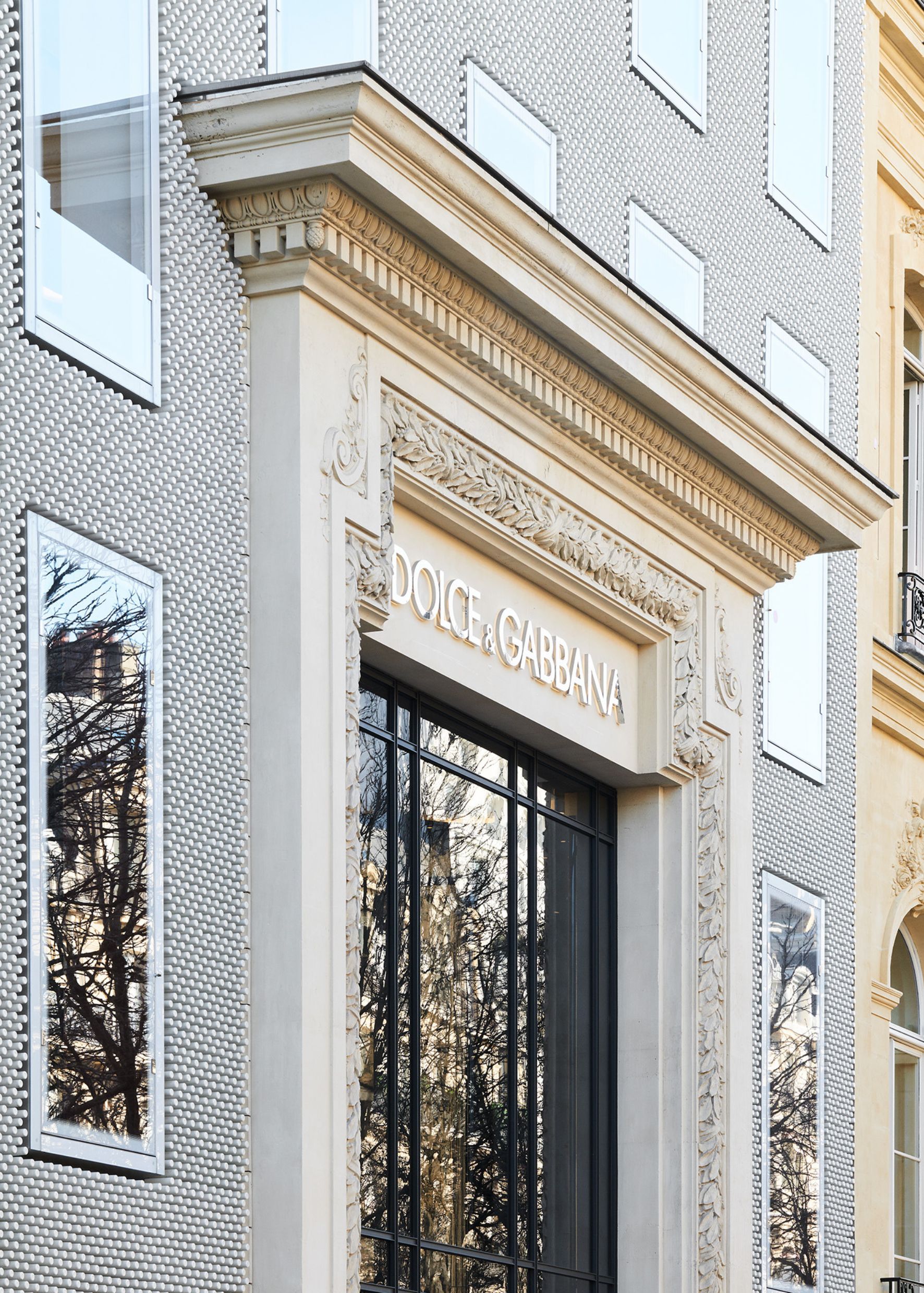 Situé dans le triangle d’or parisien au cœur du VIIIe arrondissement, encadré par les boutiques Jil Sander et Chloé, le 54, avenue Montaigne est une adresse de choix sur l’une des artères les plus luxueuses de la capitale. Occupant déjà partiellement l’espace, Dolce&Gabbana a saisi l’opportunité d’investir tout le lieu, réhabilité et agrandi lors de son acquisition par le groupe Olayan en 2014.