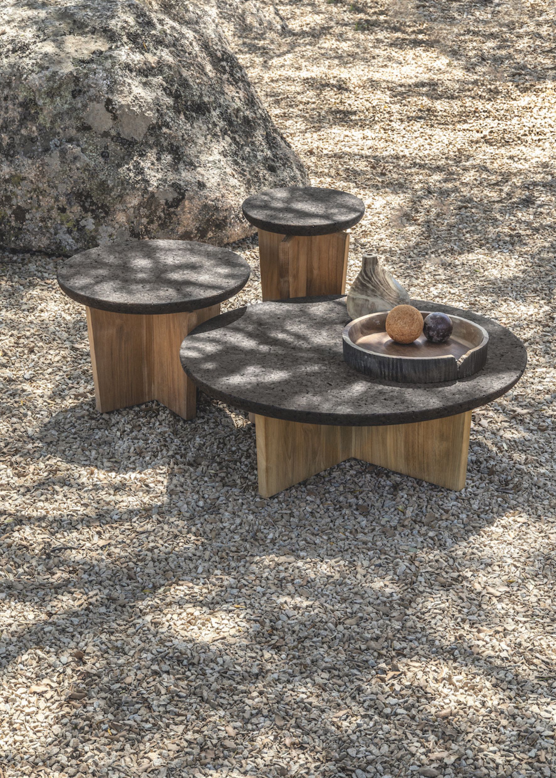 Si « Baia » et « Costiera » s’appuient sur les compétences manufacturières d’Ethimo, l’ensemble de tables basses « Cross » et la collection « Ace » ajoutent un composant inédit à sa palette de matériaux.