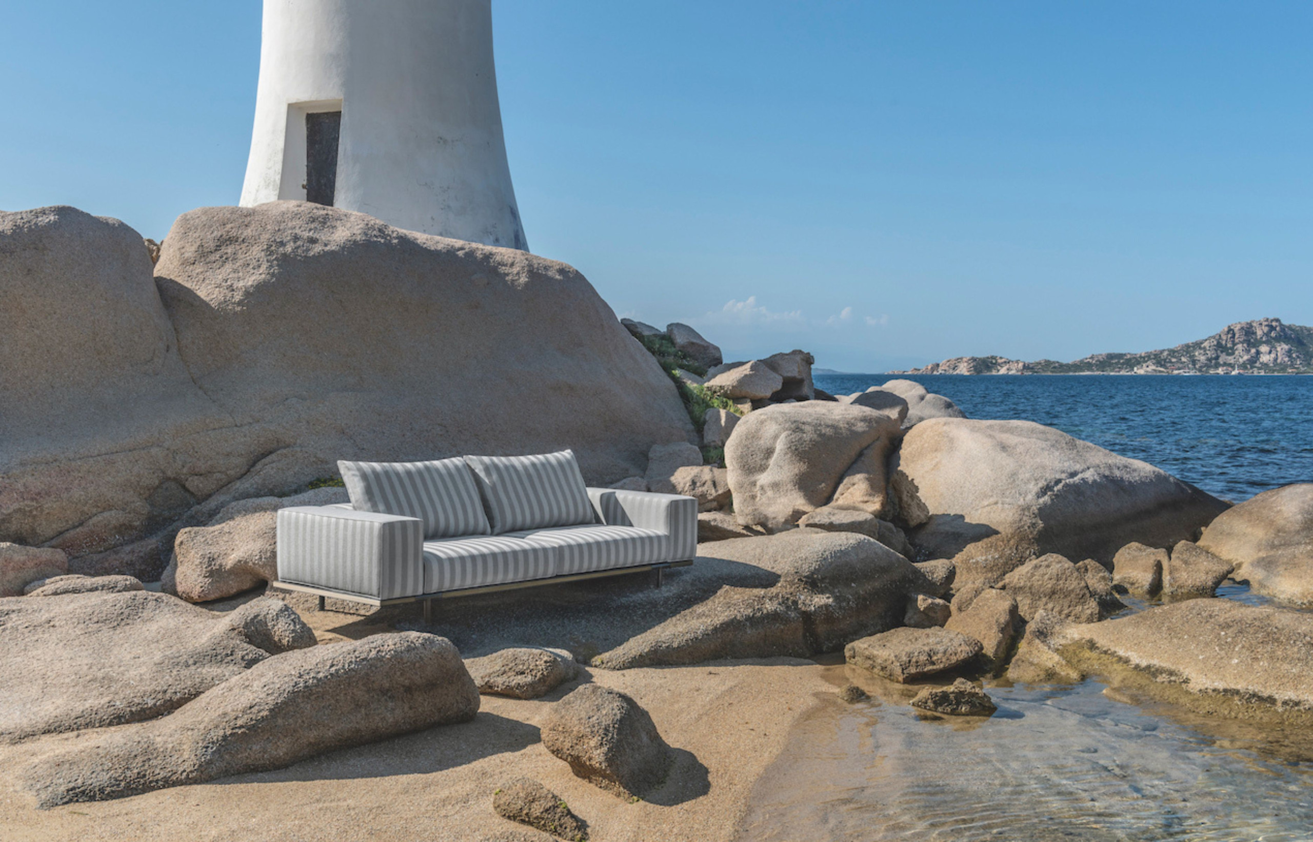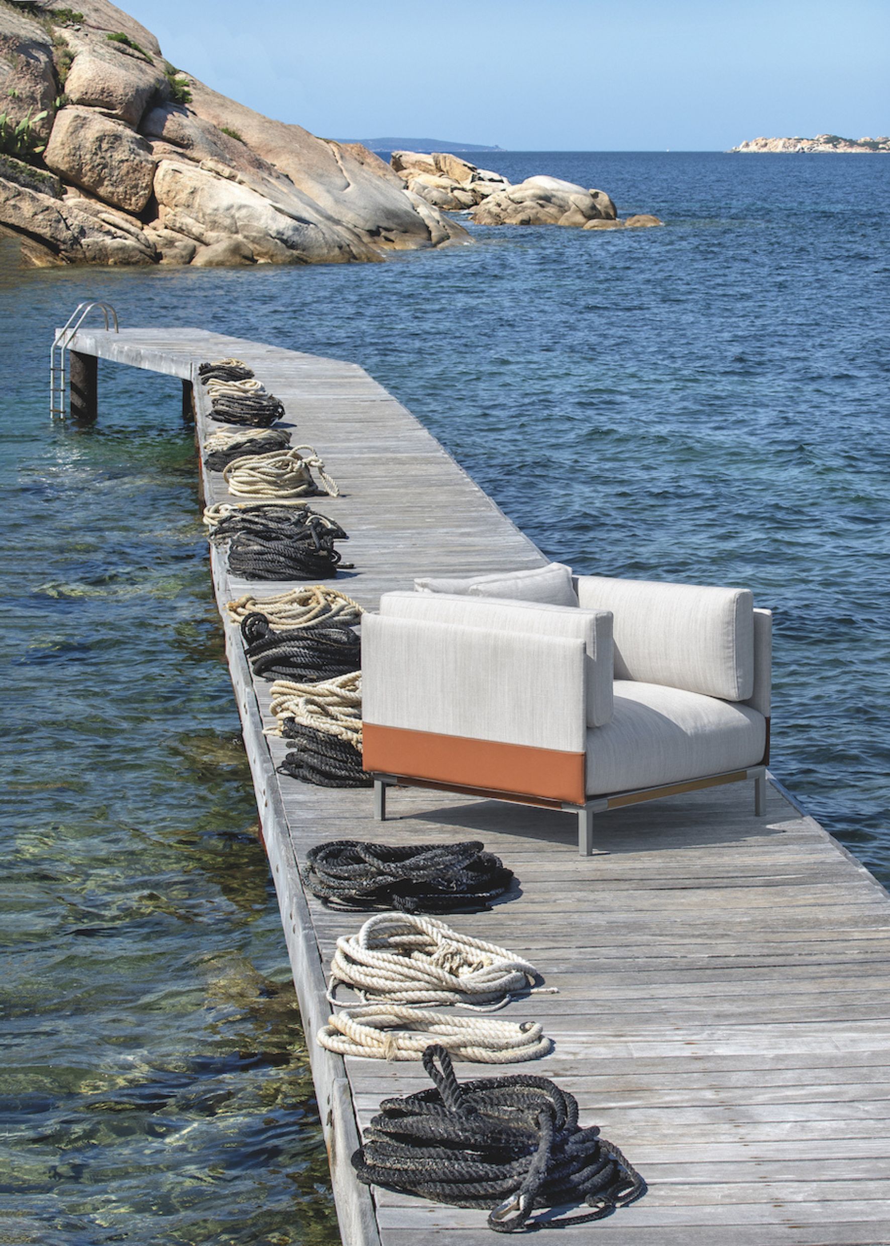 Ce sont « Baia » et « Costiera », deux familles d’assises pensées par Christophe Pillet – grâce à qui Ethimo la Méditerranéenne s’essaye enfin à la navigation –, qui ouvrent le bal.