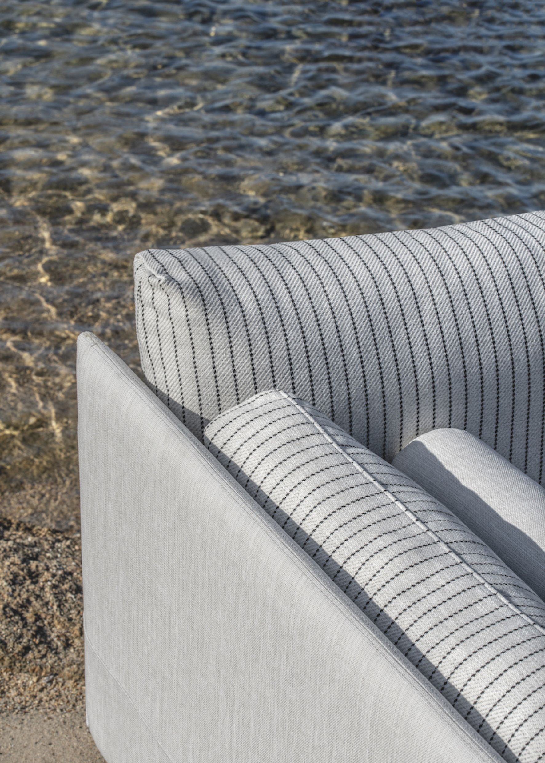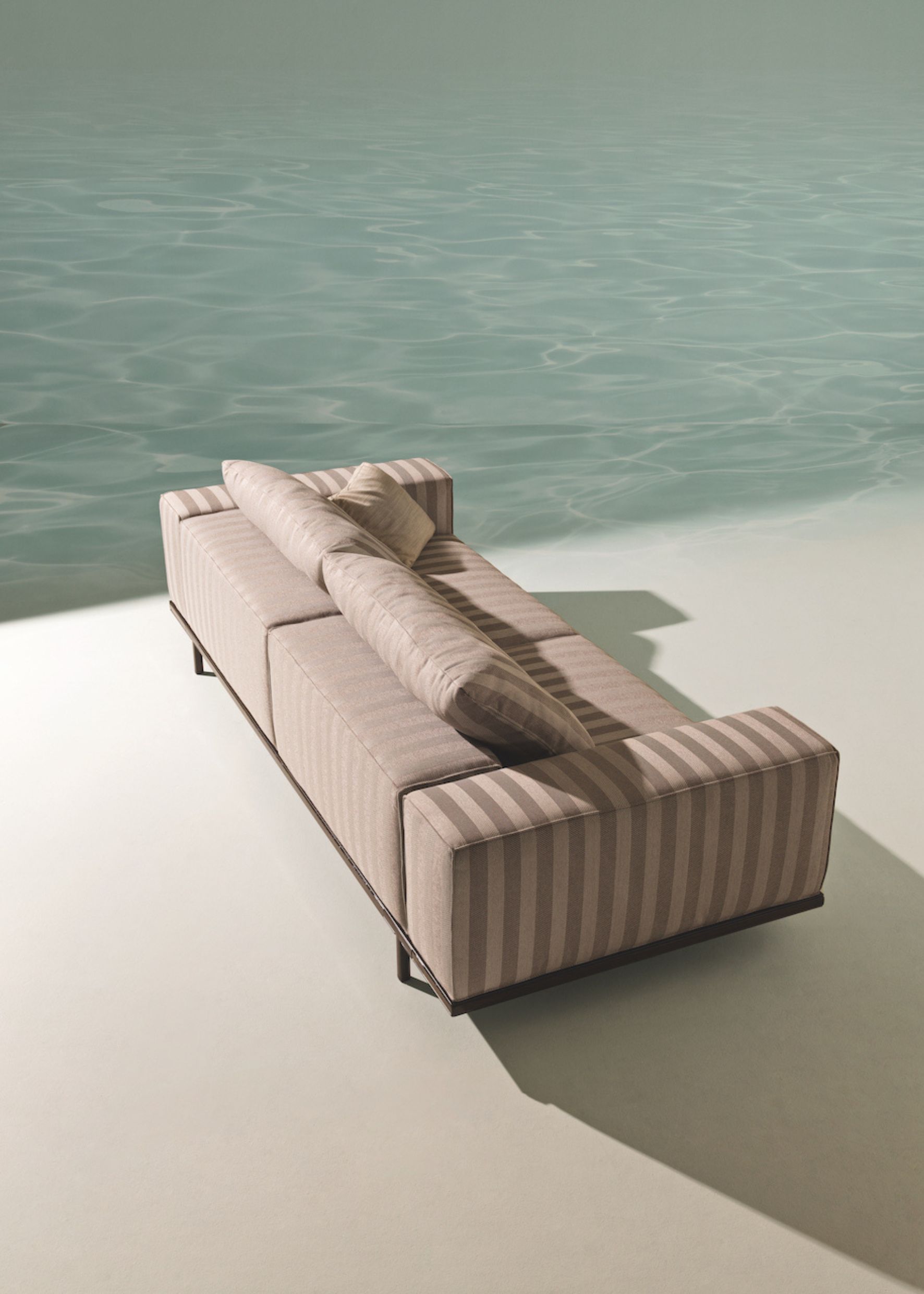 Si « Costiera » se distingue par un volumineux rembourrage structurel, « Baia » tranche au contraire par la finesse de son cadre, constitué de panneaux tapissés qui enclosent les coussins.