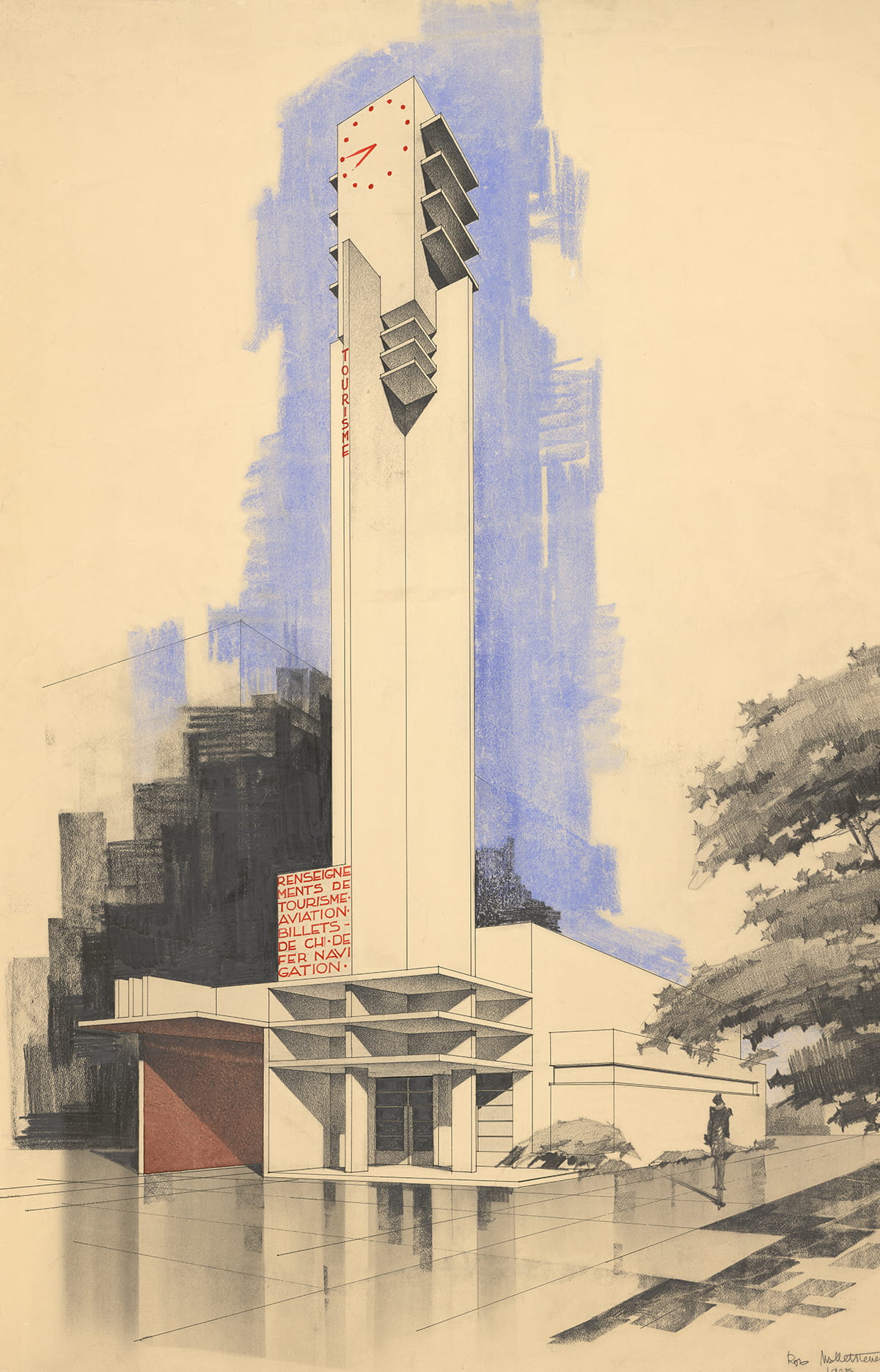 L’exposition prend le chemin tranquille de l’abécédaire qu’on égrène, mais assène régulièrement des gifles esthétiques. Montrée pour la première fois, une illustration en couleurs de Robert Mallet-Stevens représentant l’élégant et graphique Pavillon des renseignements et du tourisme, lancé dans le ciel de l’Exposition internationale des arts décoratifs de 1925, fait mouche. On redécouvre l’architecte paysagiste Gabriel Guévrékian, connu pour le jardin de la Villa Noailles, à Hyères, avec un autre projet d’eau et de lumière en aquarelle figurant un parc multicolore.