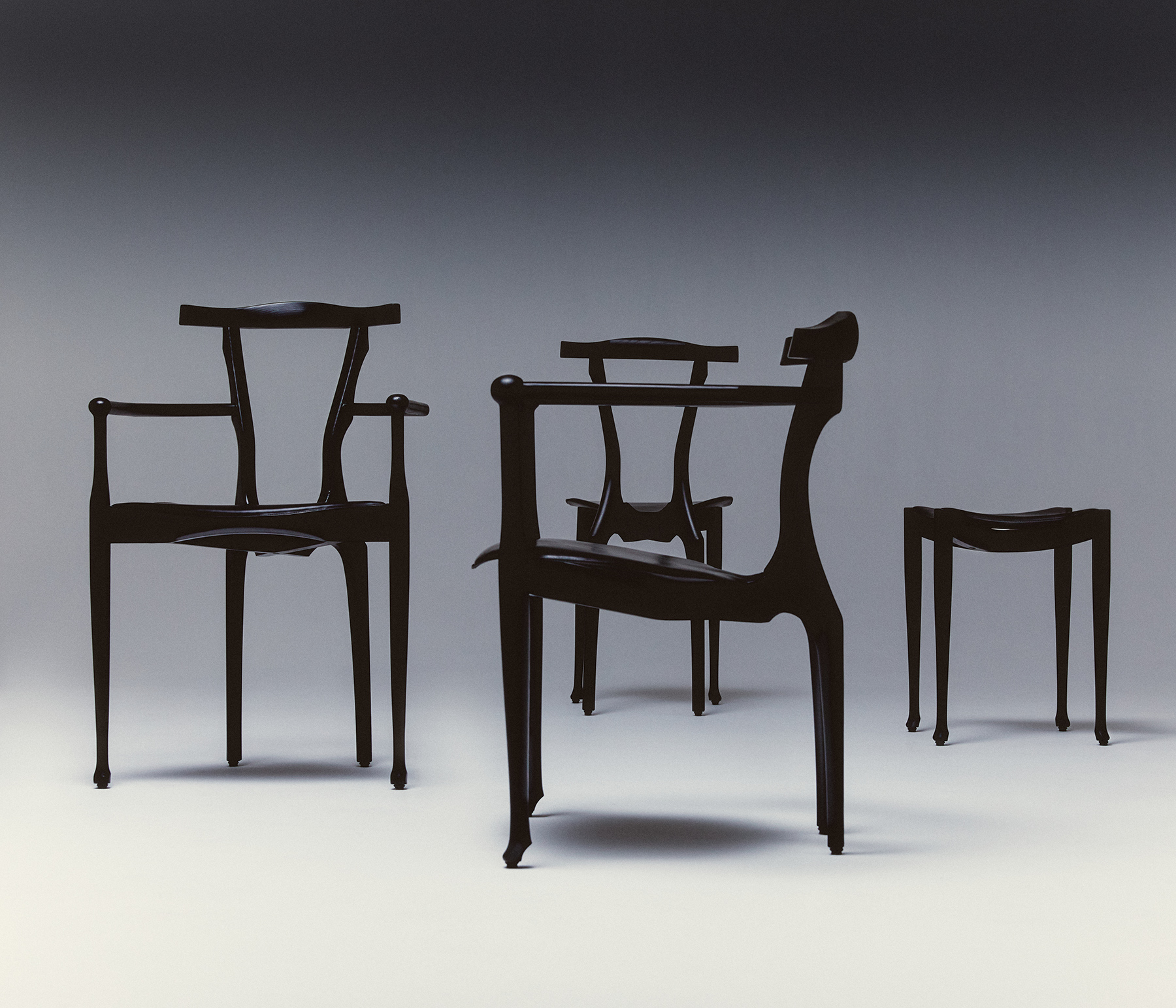 “Qu’il est fantastique de concevoir un objet en bois après avoir créé tant de choses en métal, tubulaire ou autre, explique l’Espagnol. Les veines du frêne, si belles, demeurent visibles, faisant de chaque assise une pièce unique. Cette diversité est accentuée par les irrégularités et les plis du cuir de l’assise. Quant à sa forme, elle est imprégnée des œuvres d’Antoni Gaudí et de celles de l’Italien Carlo Mollino. Pour cette raison, nous avons décidé de l’appeler Gaulino.”