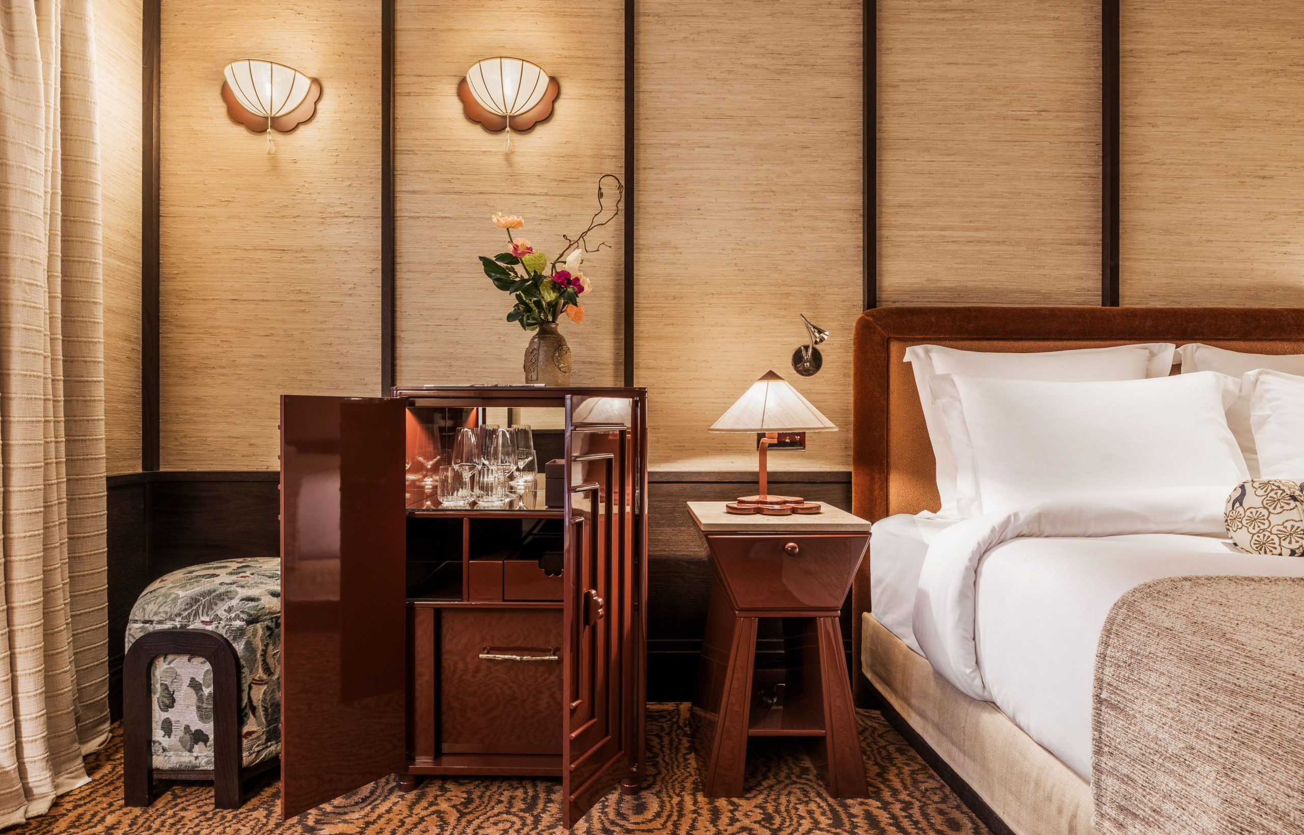 « D’emblée, l’idée d’un dialogue des cultures et des influences esthétiques est apparue comme une évidence pour poser la ligne directrice du projet », souligne Nicolas Saltiel, le fondateur du groupe Adresses Hotels, rebaptisé Chapitre Six (hôtels La Ponche, à Saint-Tropez, Monsieur Cadet, à Paris IXe…), qui a confié l’aménagement de son établissement à l’architecte d’intérieur Laura Gonzalez, en association avec le directeur artistique Olivier Leone, fin connaisseur de la culture nippone.