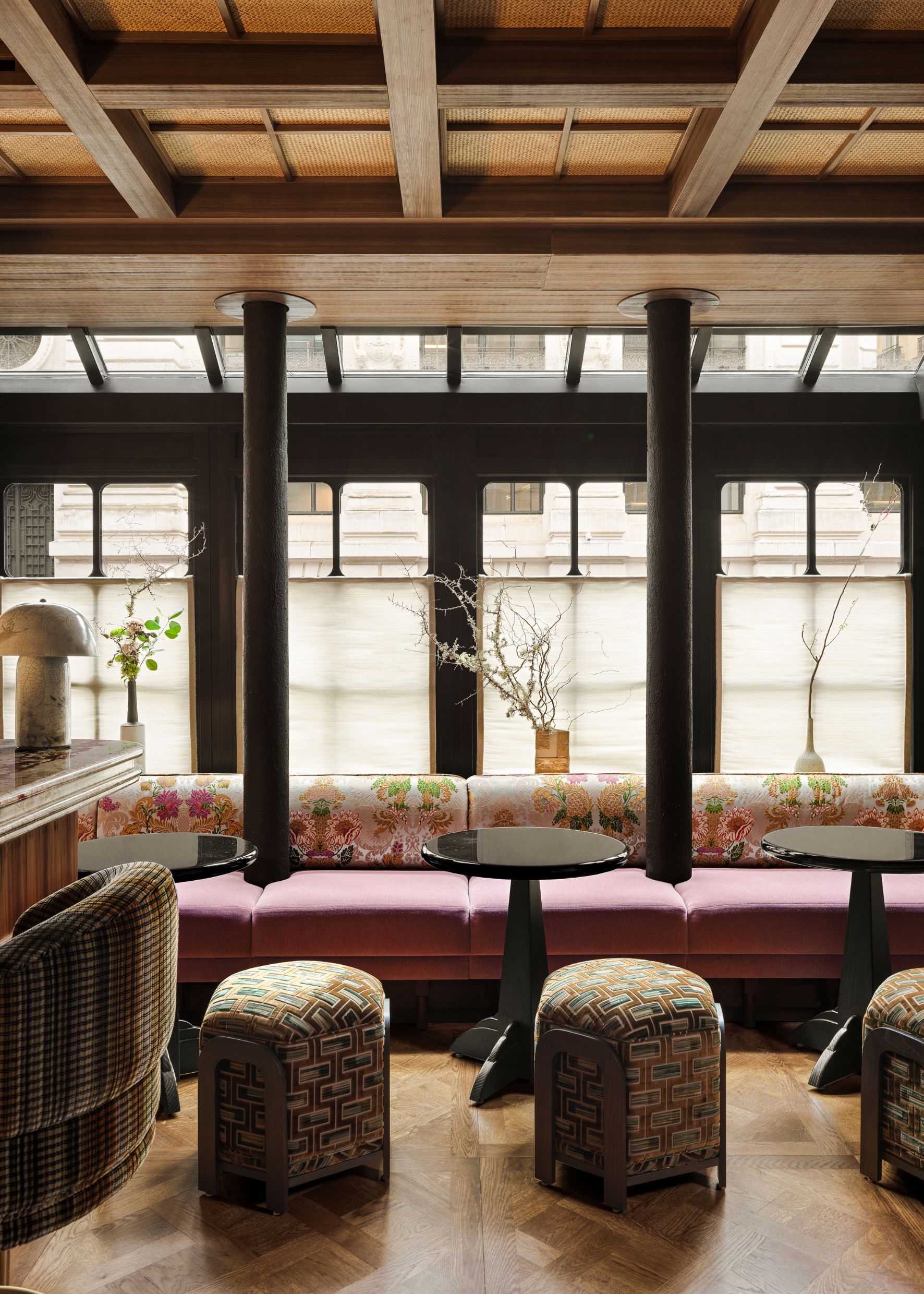 Le binôme a lui aussi fusionné au point que celle que l’on connaît d’ordinaire pour ses réalisations éclectiques, au maximalisme lumineux et joyeux, a ici dompté ses envies d’extravagance pour transformer cet ancien immeuble de bureaux en un élégant cabinet de curiosités où se mêlent esprit de la Belle Époque et raffinement japonais.