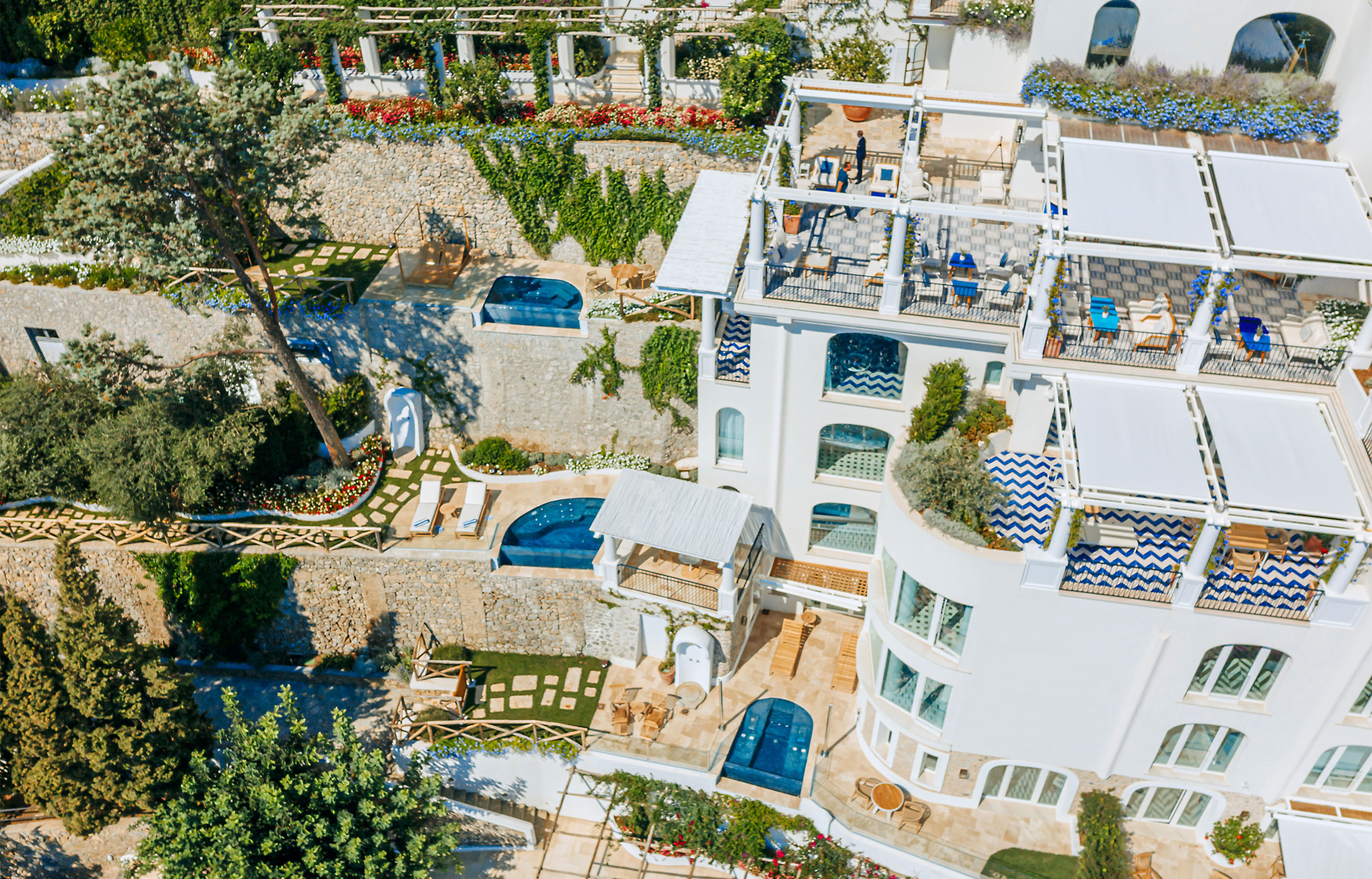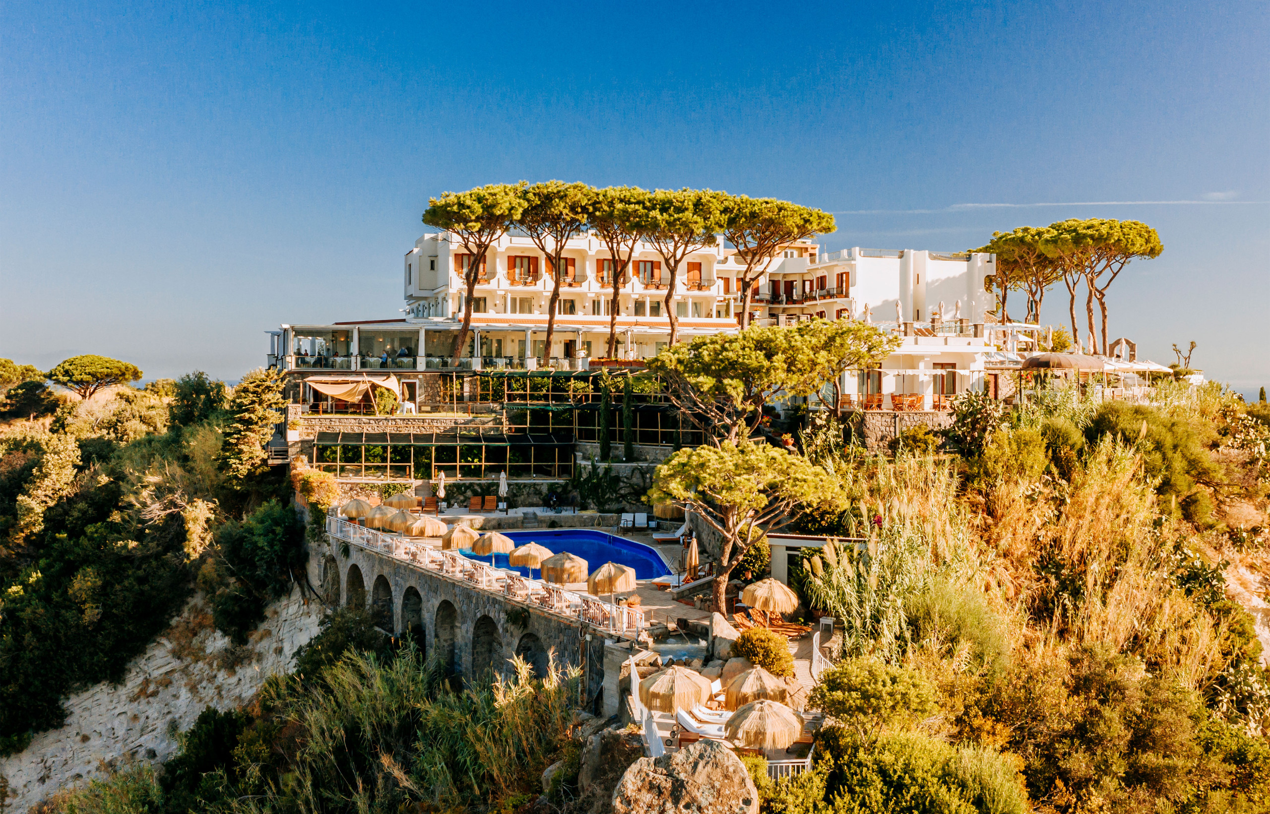 Surplombant la baie de San Montano et le golfe de Naples, l’hôtel de 73 chambres et suites est bien connu des Italiens pour ses eaux thermales riches en minéraux. Pas moins de onze piscines regardent l’horizon des flots marins au milieu d’un jardin de trois hectares aux effluves de notes fruitées et citronnées. On doit cet ensemble à l’architecte Rino Gambardella. Cette saison, l’adresse propose aussi des excursions en bateau jusqu’à l’île de Procida, désignée capitale italienne de la culture 2022.