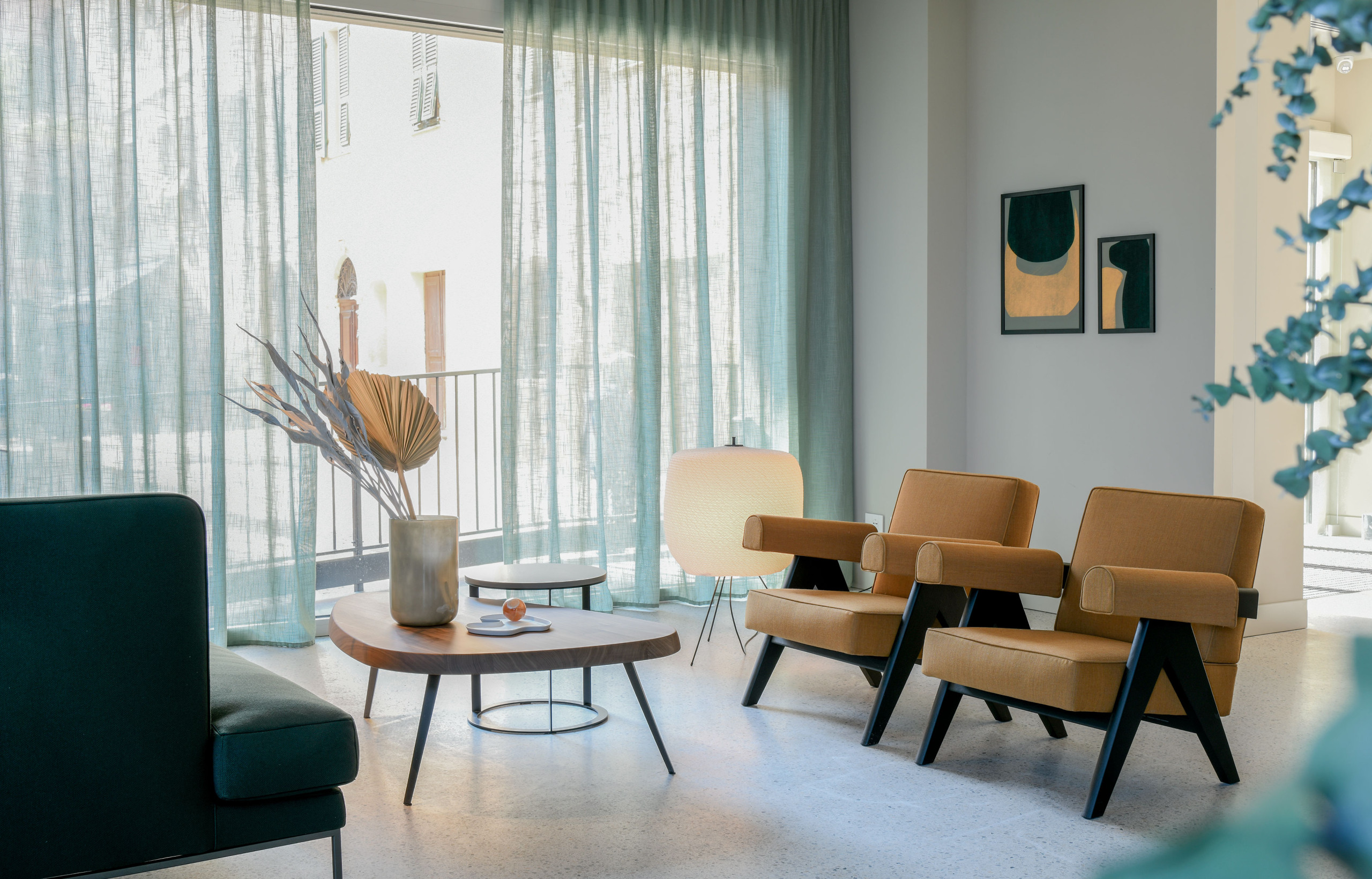 Côté mobilier, le sur-mesure a été privilégié en mobilisant les savoir-faire locaux. « Notre volonté a été de nous inscrire dans la même logique que les Couëlle père et fils, en éclairant davantage le stuc blanc, en mariant aussi de belles pièces de design contemporain à un artisanat sarde de qualité et en autorisant la lumière à pénétrer plus encore pour magnifier les lieux », a déclaré le duo d’architectes. D’abord mandatés pour sept chambres, ils rendirent un travail si réussi qu’on leur en commanda d’autres, dont des suites, ainsi que le lobby et le salon.
