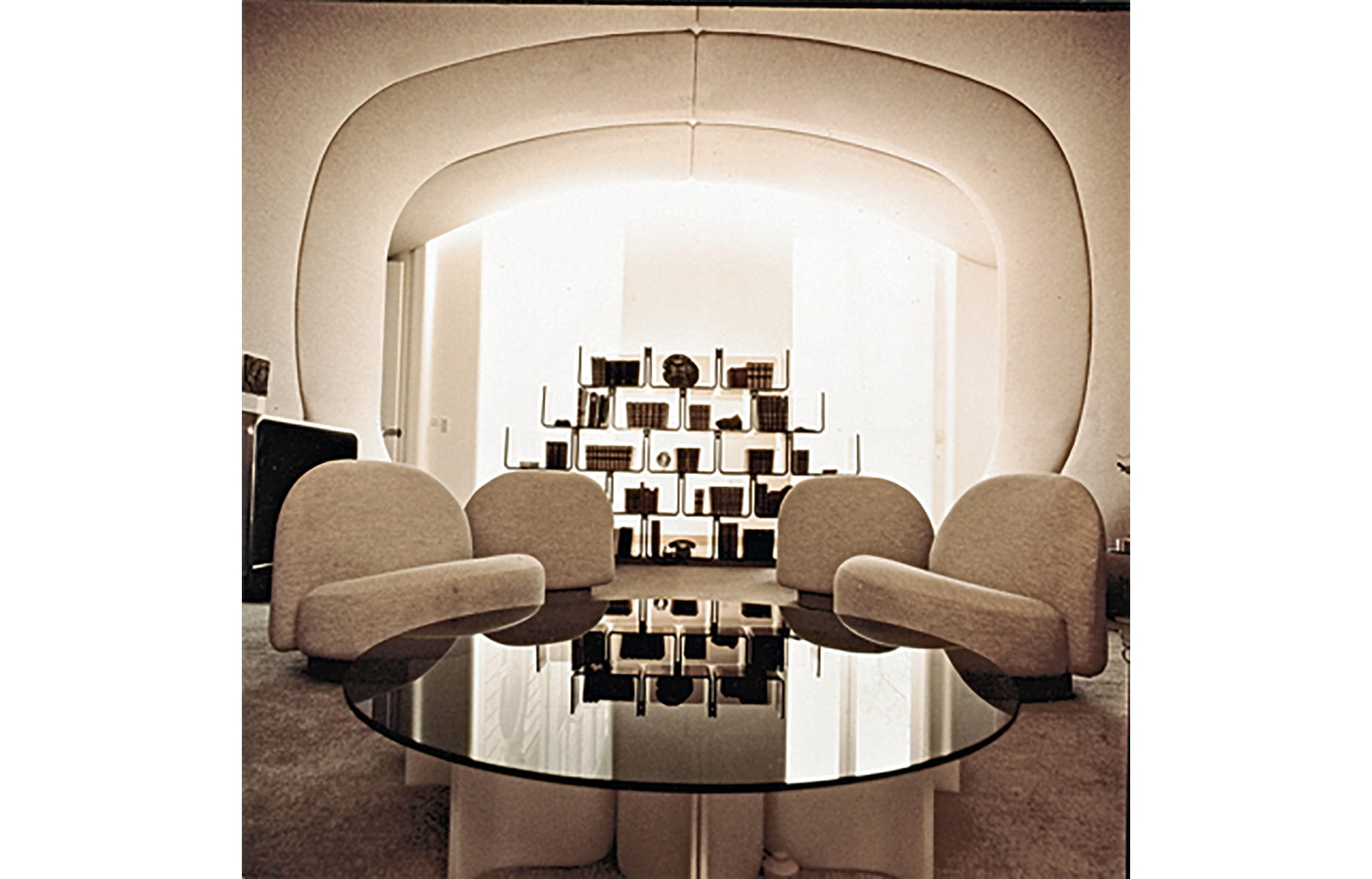 Elle est belle à la manière de ce qui est débarrassé d’éléments de style. Question d’honnêteté, voire d’hygiène chez Paulin. Son but ? Satisfaire ses clients. Comme Georges Pompidou qui, lors d’une visite au Mobilier national, déclare : « Je trouve excellente votre idée de créer un atelier pour le mobilier moderne. Il n’y a pas de raison de laisser aux Italiens le monopole de la recherche et de la création. D’ailleurs, si je peux, je ferai appel à vos services pour meubler l’Élysée. » En février 1972, la presse publie les images de la nouvelle aile de l’Élysée signée Paulin. Dans le couloir longeant les quatre pièces, la bibliothèque en méthacrylate fumé fait office de paravent.