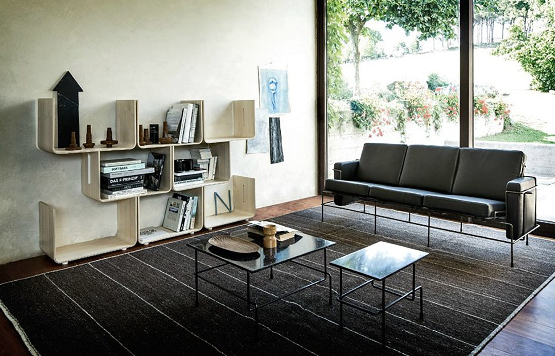 Dès 1968, elle avait été présentée sur le stand de l’éditeur Mobilier international au Salon des arts ménagers. Les 19 caissons du modèle étaient alors en Altulor teinté brun. En 1973, la bibliothèque réapparaît dans un projet de Paulin pour un showroom à Paris. Et en 2009, l’éditeur de Magis, Eugenio Perazza, la réédite, aussi belle qu’à ses débuts…