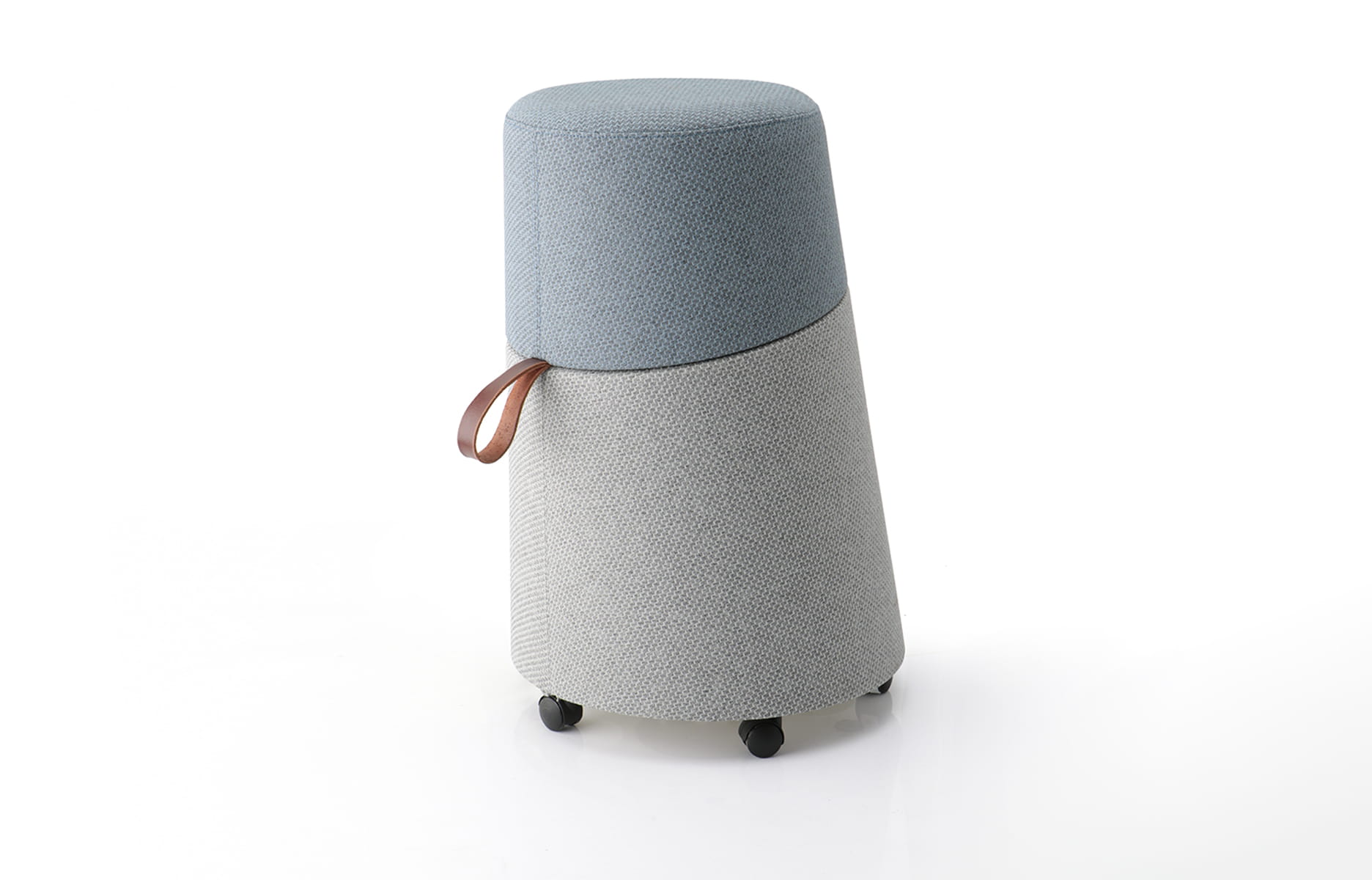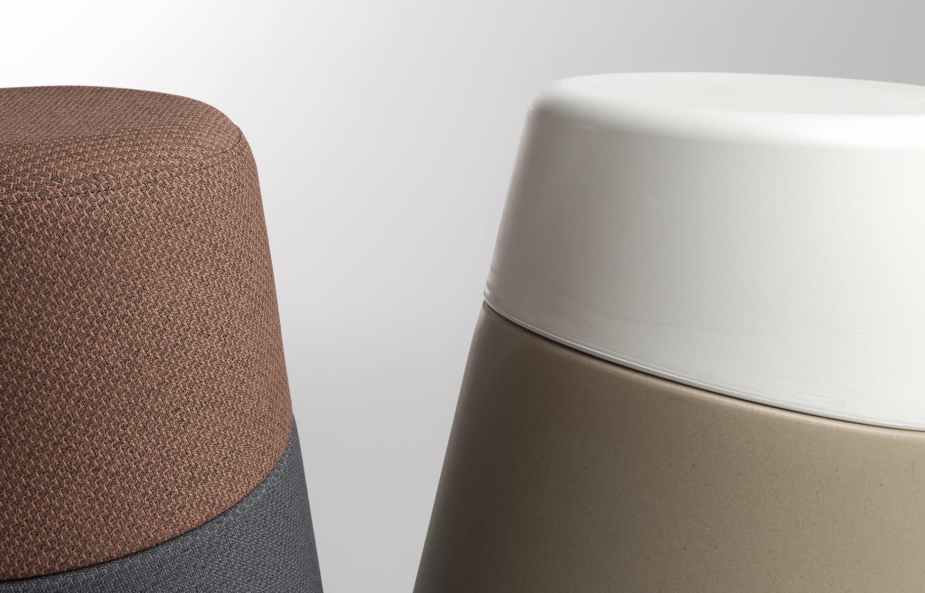 Pour répondre à ce cahier des charges, Bruno Houssin propose le tabouret-pouf Kulbu. Ce petit mobilier est, conformément aux souhaits de Sokoa, un objet nomade muni d’une poignée pour le transporter facilement, pour un usage intérieur comme extérieur. Sa hauteur a été étudiée pour être adaptée et confortable pour tous : 55 cm en version indoor et 53 cm en version outdoor. Il est aussi à bascule, ce qui permet une liberté de mouvement et libère les tensions du dos. Bruno Houssin crée un modèle simple mais réalisé en deux pièces, pour pouvoir garnir différemment l’assise et la base, dans des tissus et des teintes ton sur ton ou totalement différents. Ce faisant, il valorise l’un des savoir-faire de Sokoa.