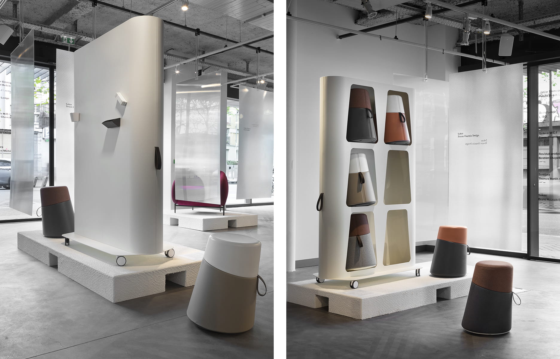 Bruno Houssin ne s’est pas contenté de cela. Le designer a eu la riche idée d’ajouter à Kulbu un module de rangement, lui aussi mobile. « Je réfléchis les projets en terme d’usage, et je suis aussi architecte d’intérieur, explique-t-il. Mon rôle est d’insuffler une dynamique auprès des entreprises avec lesquelles je travaille, de pousser plus loin le concept de départ quand je le peux. C’est aussi ce que permet la position de designer externe. M’est venue l’idée d’un meuble de rangement métallique pour y loger 6 Kulbu d’un côté, et qui puisse être utilisé de l’autre comme outil de travail, en intégrant un paper board, un tableau pour écrire, pourquoi pas même un système d’isolation acoustique… Nous travaillons d’ailleurs à une gamme d’accessoires pour début 2020 ». Gageons que l’histoire ne s’arrêtera pas en si bon chemin !