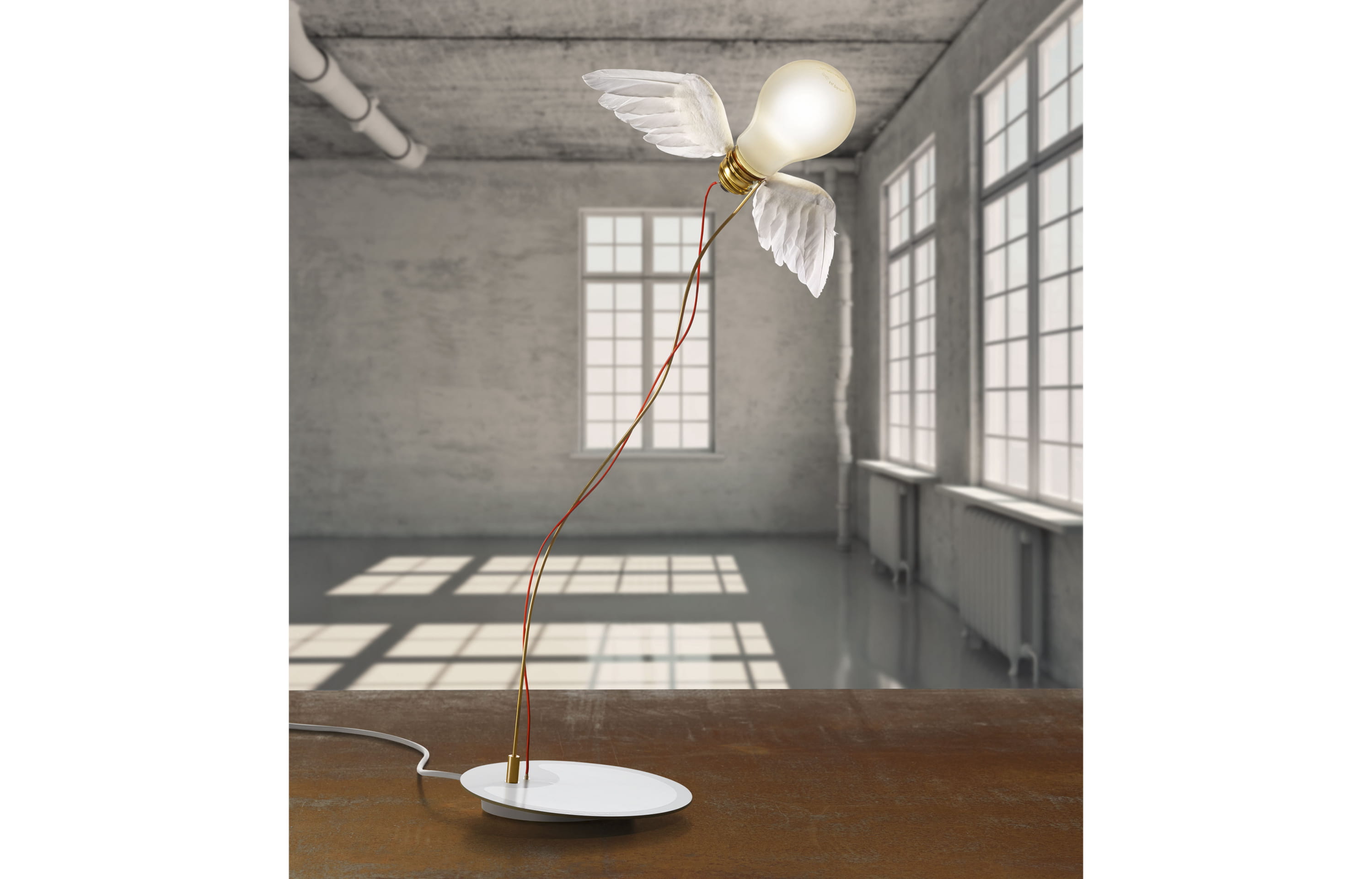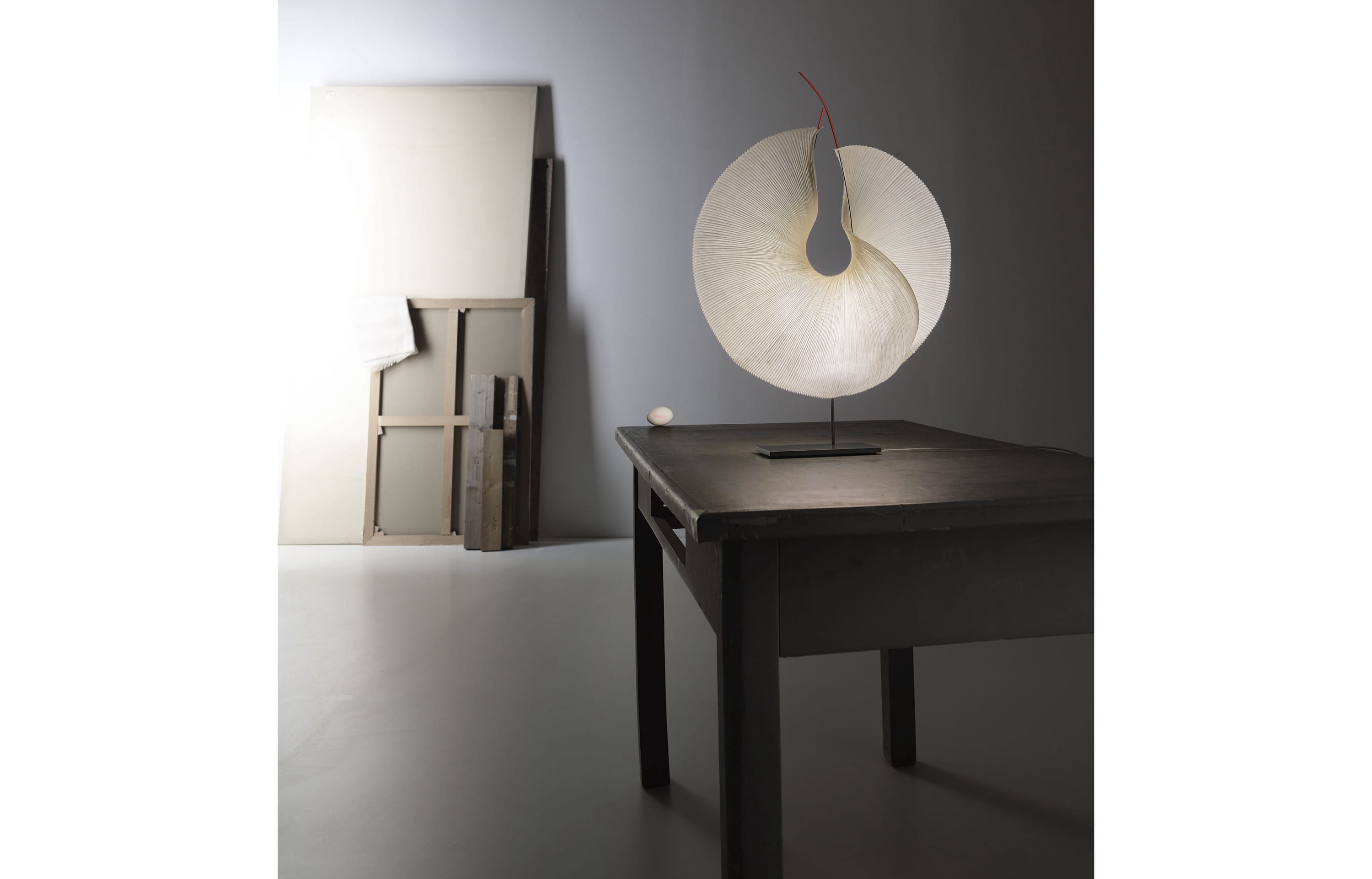 L’atelier se répartit entre le QG (bureau, showroom) et un deuxième lieu dans la ville. Dès le départ, le maître avoue une fascination non seulement pour la lumière mais aussi pour l’ampoule électrique et sa forme de bulbe. En 1966, c’est celle du plafond d’une pension vénitienne un peu borgne qui lui donne l’idée de Bulb, la lampe en forme d’ampoule qui l’a fait connaître.
