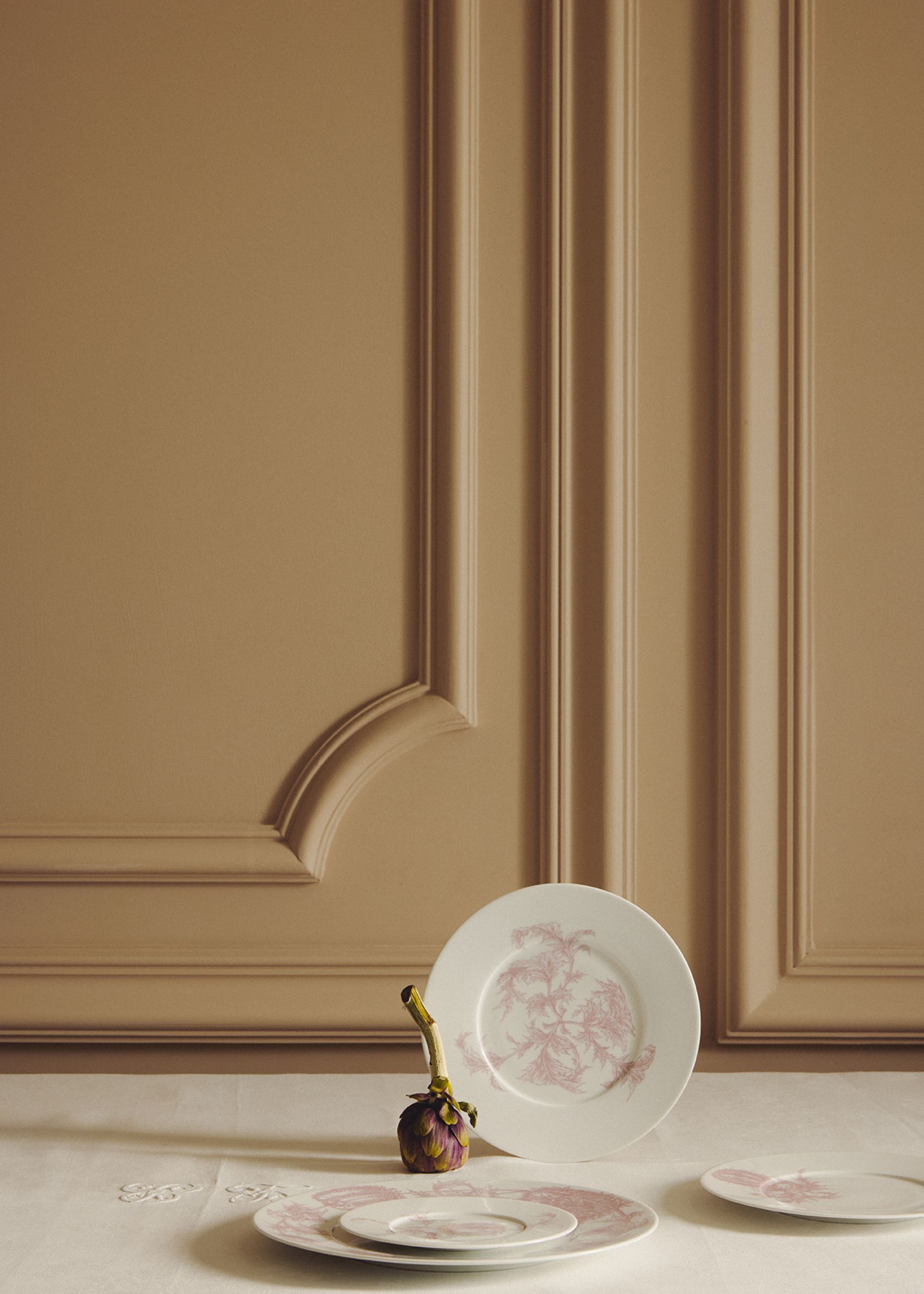 Chaque pièce possède son motif unique, décliné en coloris Rose de Sable ou Brun de Cassel, et bientôt Bleu de Delphes. La porcelaine est complétée par du linge de table monogrammé, des sets et des serviettes, patiemment chinés, puis reteints et gansés. Une collection d’arts de la table à adopter sans plus attendre.