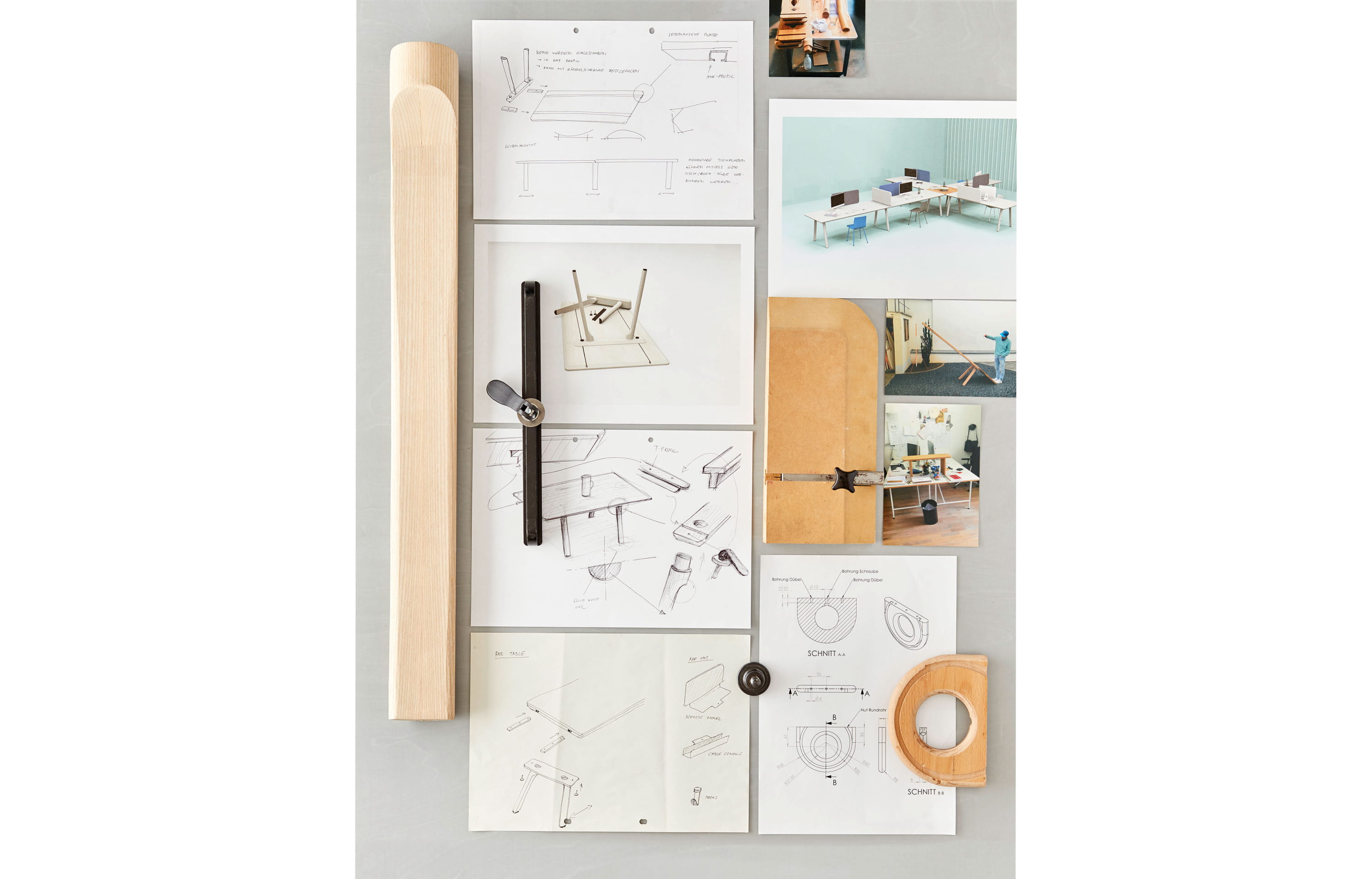 Au début, les deux menuisiers réalisaient eux-mêmes leurs prototypes dans l’atelier du studio. Aujourd’hui, ce sont leurs clients qui prennent en charge ce travail préliminaire, mais « sur la base des dessins, rendus et modèles détaillés que nous leur fournissons », soulignent les designers. La collaboration avec le fabricant de meubles en bois massif Zeitraum, par exemple, a débuté avec un prototype d’étagères que les jeunes créateurs ont soumis au concours de design D3 Contest lors du salon de Cologne en janvier 2014. Zeitraum acquit le modèle Hide& Park immédiatement après et le présenta au Salon du meuble de Milan trois mois plus tard.