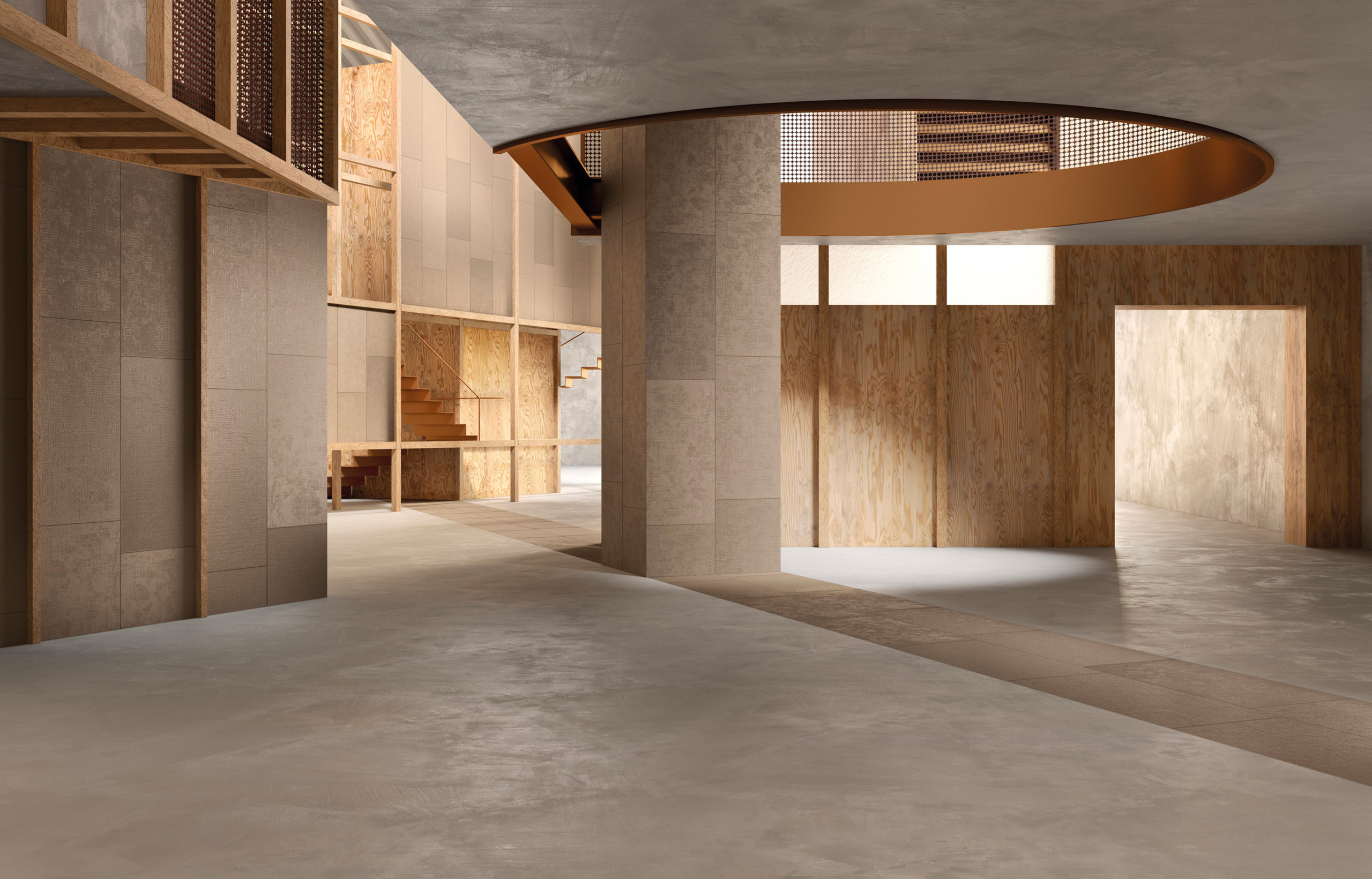 Pionnières dans leur domaine, les surfaces de la Serie 100 furent les toutes premières à recourir dès 2010 à un minimum de 40% de matériaux recyclés (et jusqu’à 100% selon leur couleur) dans leur fabrication : des chutes de pierres, de verre ou de cristal, mais aussi des céramiques recalées au contrôle qualité avant d’être réintroduites dans le circuit. Disruptive lors de son lancement, cette conception qui repoussait les normes écologiques de l’époque aura donc finalement fini par en devenir une elle-même. Inspirée par cette collection qui marqua le début d’une nouvelle trajectoire pour Fiandre, Tribute100 contient bien sûr au moins 40% de matériaux recyclés. Mais puisque c’est le cas de tout le catalogue de l’entreprise aujourd’hui, l’hommage est avant tout d’ordre esthétique.