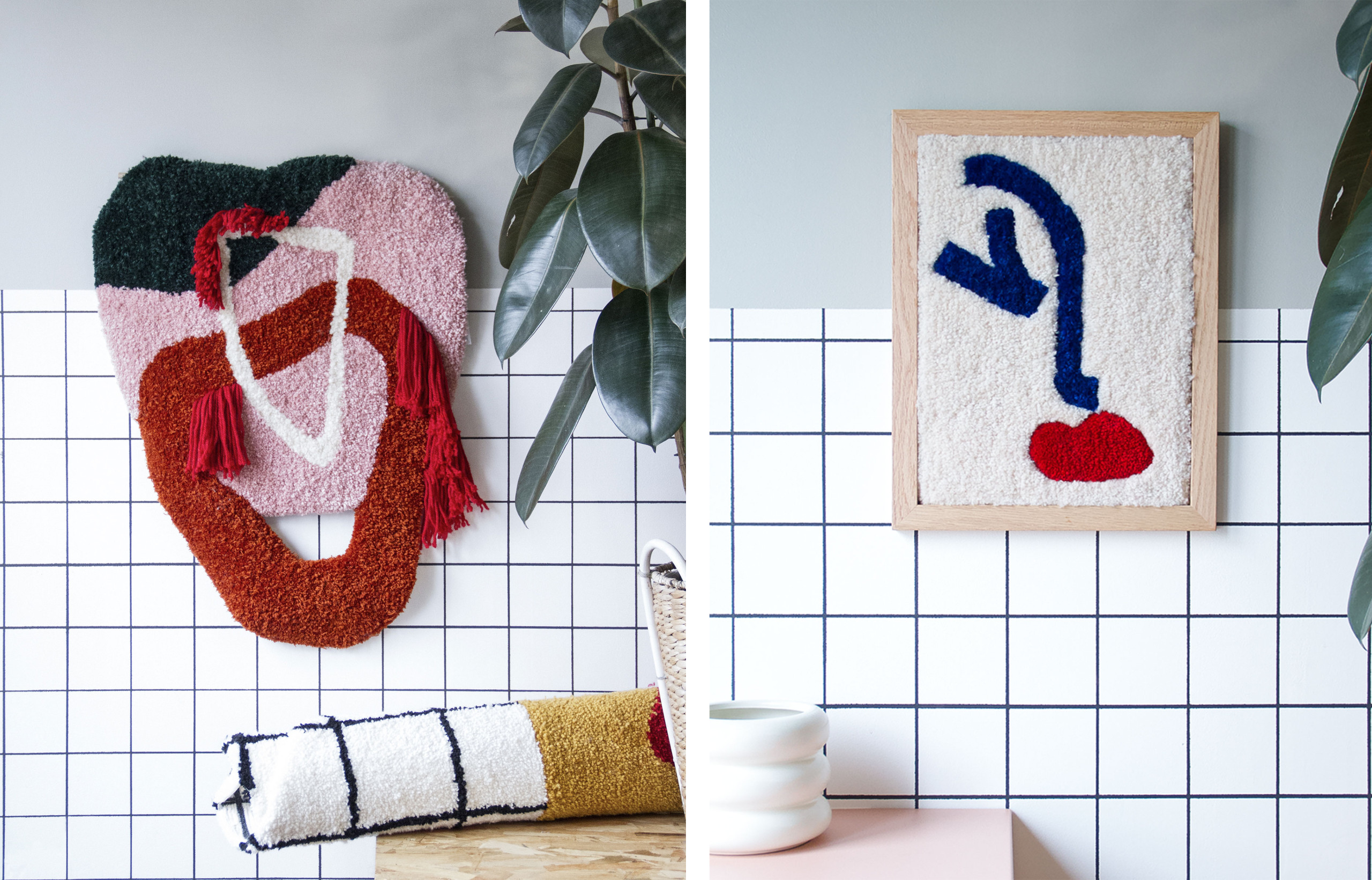 Dimensions, matières, formes : Constance et Cathy peuvent également, à la demande du client, concevoir un tapis sur-mesure. Il faut, cependant, compter environ six semaines de délai pour pouvoir exposer cette oeuvre d’art dans son intérieur. Accrochées au mur, les pièces se déclinent en plusieurs formats et habillent l’espace en un clin d’œil.