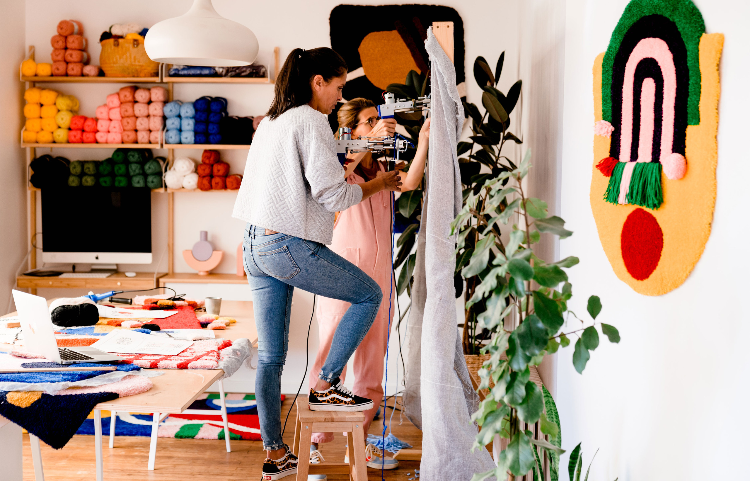 Dans leurs ateliers situés à Nantes et à Saint-Nazaire, Constance et Cathy fabriquent des tapis graphiques, colorés et pop s’inspirant du style Memphis. C’est leur passion pour la décoration d’intérieur et l’artisanat qui a réuni ce duo autour d’une technique venant tout droit d’Asie, le tuffetage. Découverte.