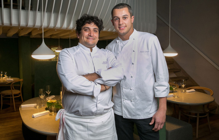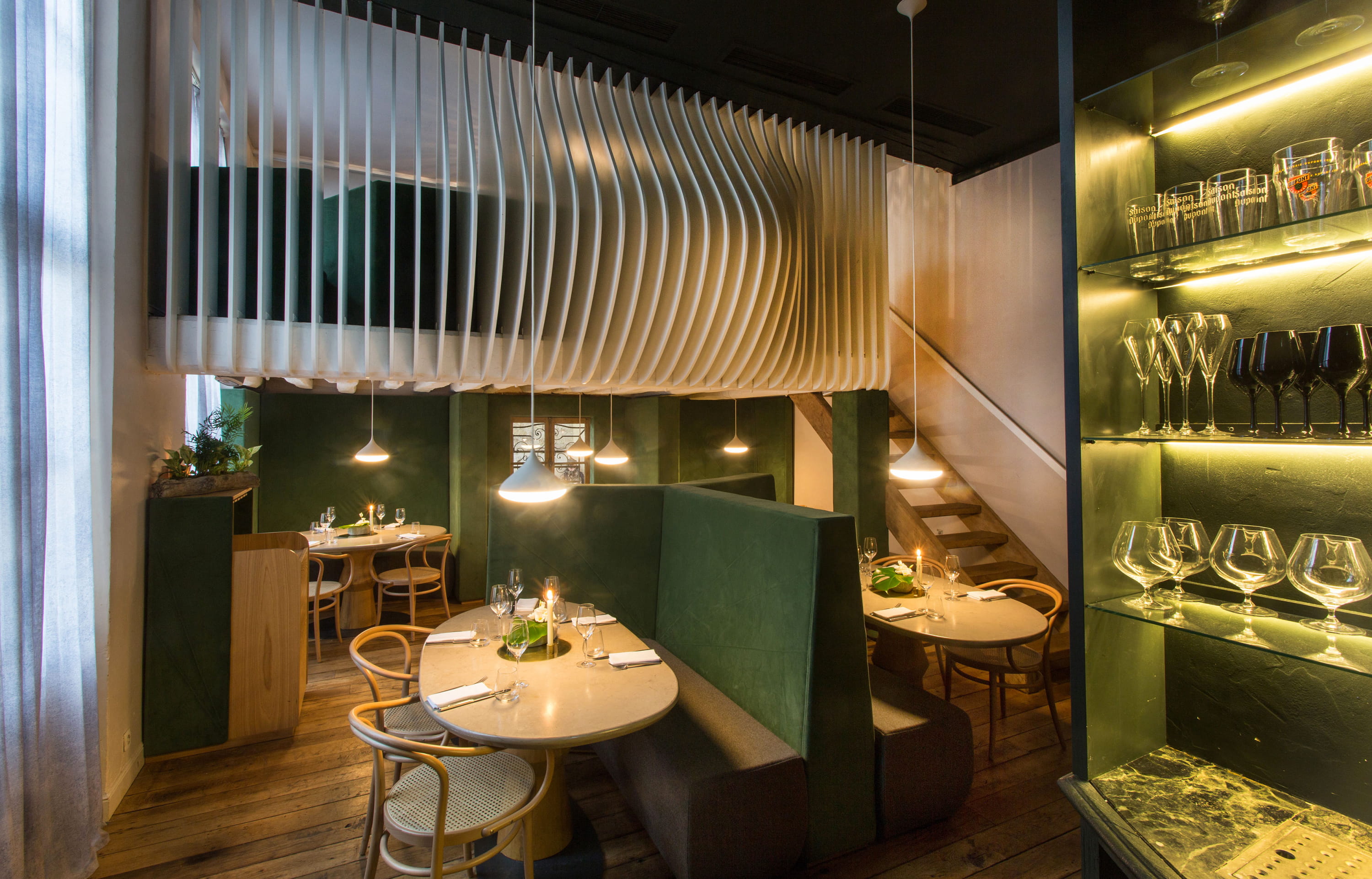 Une grotte gastro langée de vert mousse et de stalactites un brin design, en planque dans un cœur grand comme ça, lui-même caché dans une cour pavée du Marais. Aux commandes, on trouve un attelage de jeunes loups sérieusement accros au manger vrai, au beau produit et aux flacons idéalement sourcés. En 2015, Julien Fouin et Ludovic Dardenay, jeunes milords de la bistronomie parisienne (Jaja, Glou, Beaucoup… huit restaurants au compteur, plus une boulangerie !) proposent au chef-propriétaire et doublement étoilé du Mirazur, à Menton, Mauro Colagreco, de prendre le maquis direction le cœur de Paris.
