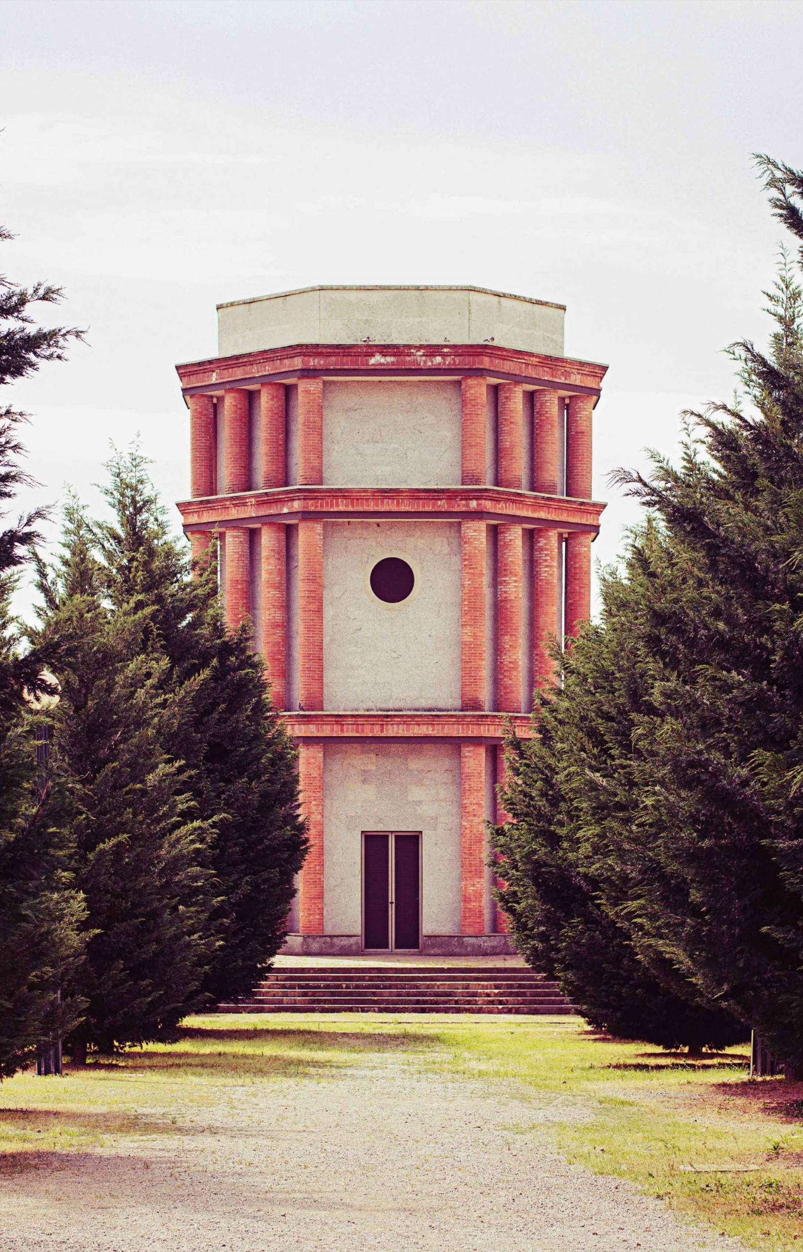 Lors d’un séjour à l’hôpital, pendant lequel il se remet d’un grave accident de voiture, l’architecte et théoricien Aldo Rossi (1931 – 1997) dessine le cimetière de San Cataldo, à Modène, en Italie. Ayant lui-même frôlé la mort, il décide ainsi d’imaginer sa dernière demeure. Des circonstances morbides qui le poussent à conceptualiser « une ville pour les morts » de forme cubique, un gros bloc dont l’ossuaire se démarque par sa taille imposante et son caractère résolument post-moderne. Mais sa réelle particularité se trouve dans son absence de vitres, de portes et de toit. Encore une fois, l’idée lui vient dans sa chambre lors de sa convalescence : depuis son lit, il observe le bleu du ciel, l’estimant parfaitement suffisant.