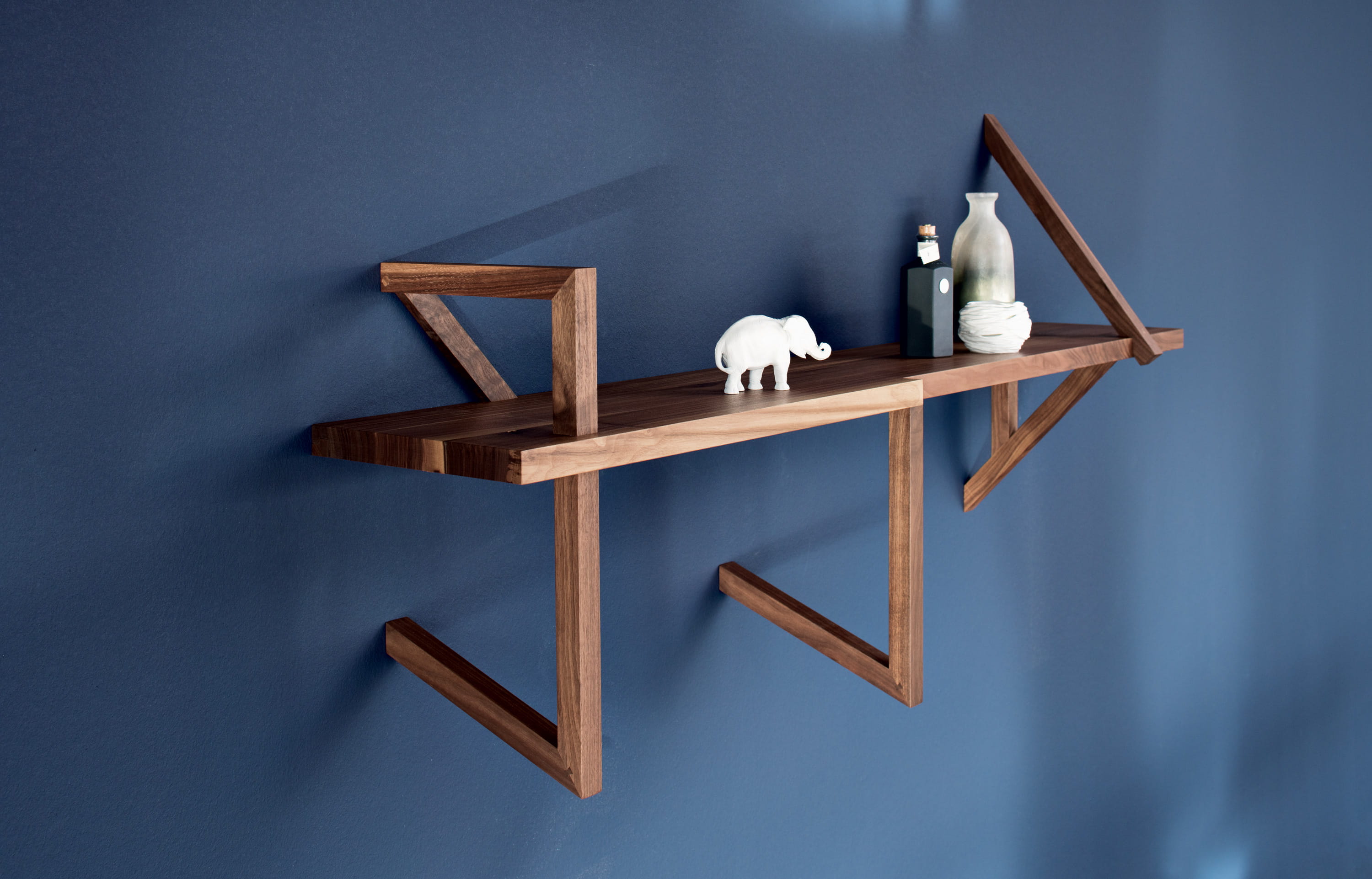 A la croisée de la sculpture murale et de l’étagère, les Taidgh Shelf Series, signées du designer californien Taidgh O’Neill forment une série de quatre propositions sobrement baptisées A, B, C et D. Chaque modèle d’étagère offre ainsi un dessin et un graphisme particuliers, grâce aux pièces de bois massif aux veinures apparentes. A et B peuvent se combiner pour donner naissance à une autre forme, et C ajoute une touche cuivrée.