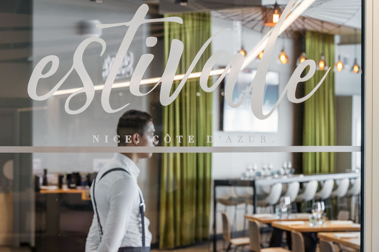 Ouvert depuis peu, L’Estivale fait désormais partie des adresses gourmandes de la Côte d’Azur. Avec une vue imprenable sur les pistes, la mer, la montagne et la ville, ce vaste espace lumineux reprend, en termes de déco, les codes du Mirazur : un mobilier sobre et élégant qui met en avant les matériaux naturels, comme le bois rehaussé d’azulejos. Côté couleurs, le choix se tourne vers des teintes neutres, mises en valeur par une lumière chaude bien distribuée. Il s’en dégage une atmosphère calme et raffinée propice au voyage, l’introduction idéale quand on arrive sur la Côte ou bien une halte-souvenir avant de quitter la cité azuréenne. Non seulement ouvert à tous, le lieu reçoit aussi des séminaires, des sessions de co-working et des repas d’affaires.