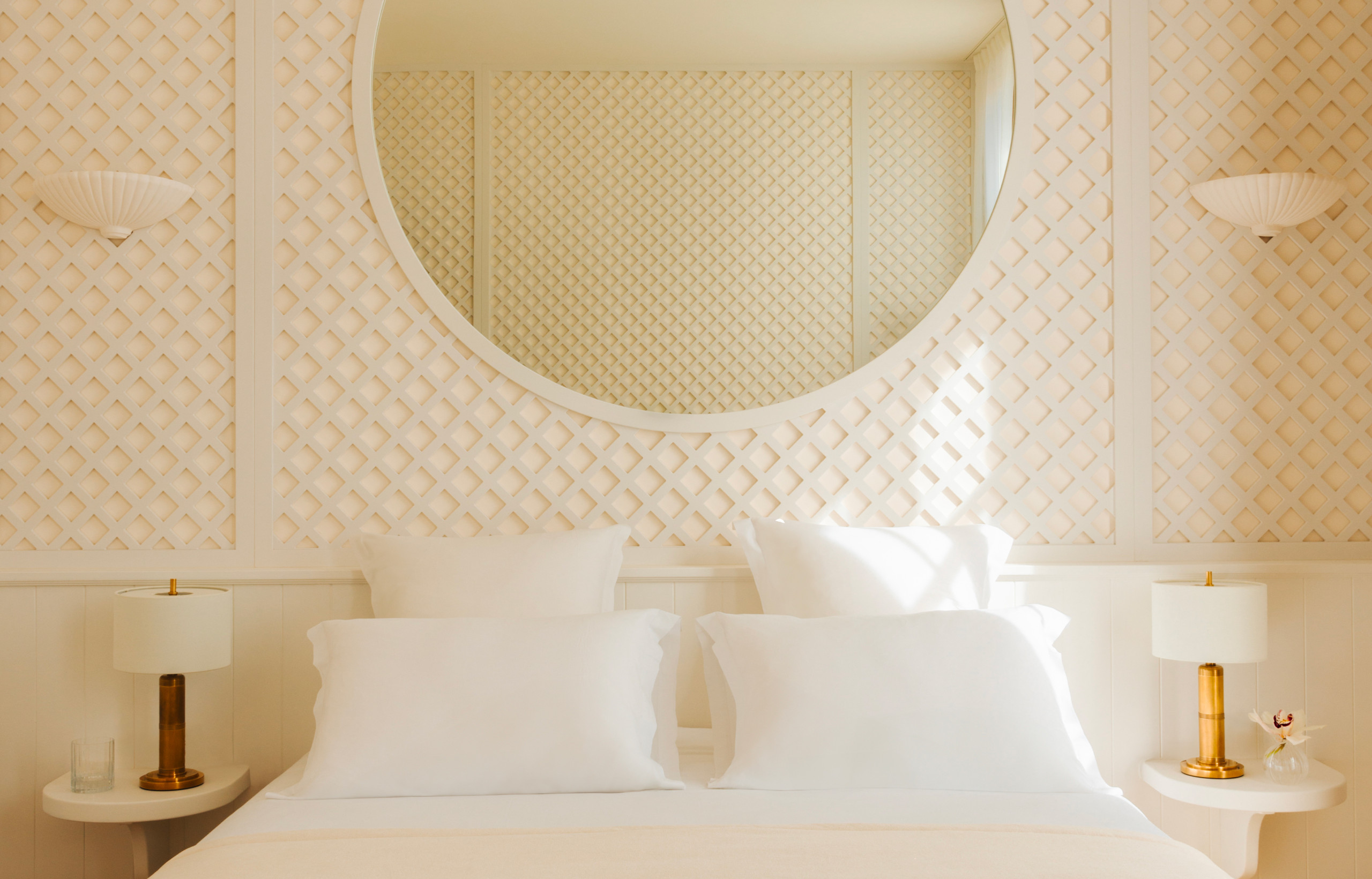 Résultat ? Un lieu intemporel, hors du temps et des tendances, qui a vocation à rester d’actualité. « Nous voulions que les hôtes retrouvent l’image fantasmées des hôtels de Hyères de cette époque que nous avions en tête, leur permettre d’expérimenter cette vie là, ce décor qui nous fait voyager et nous transporte ailleurs. »