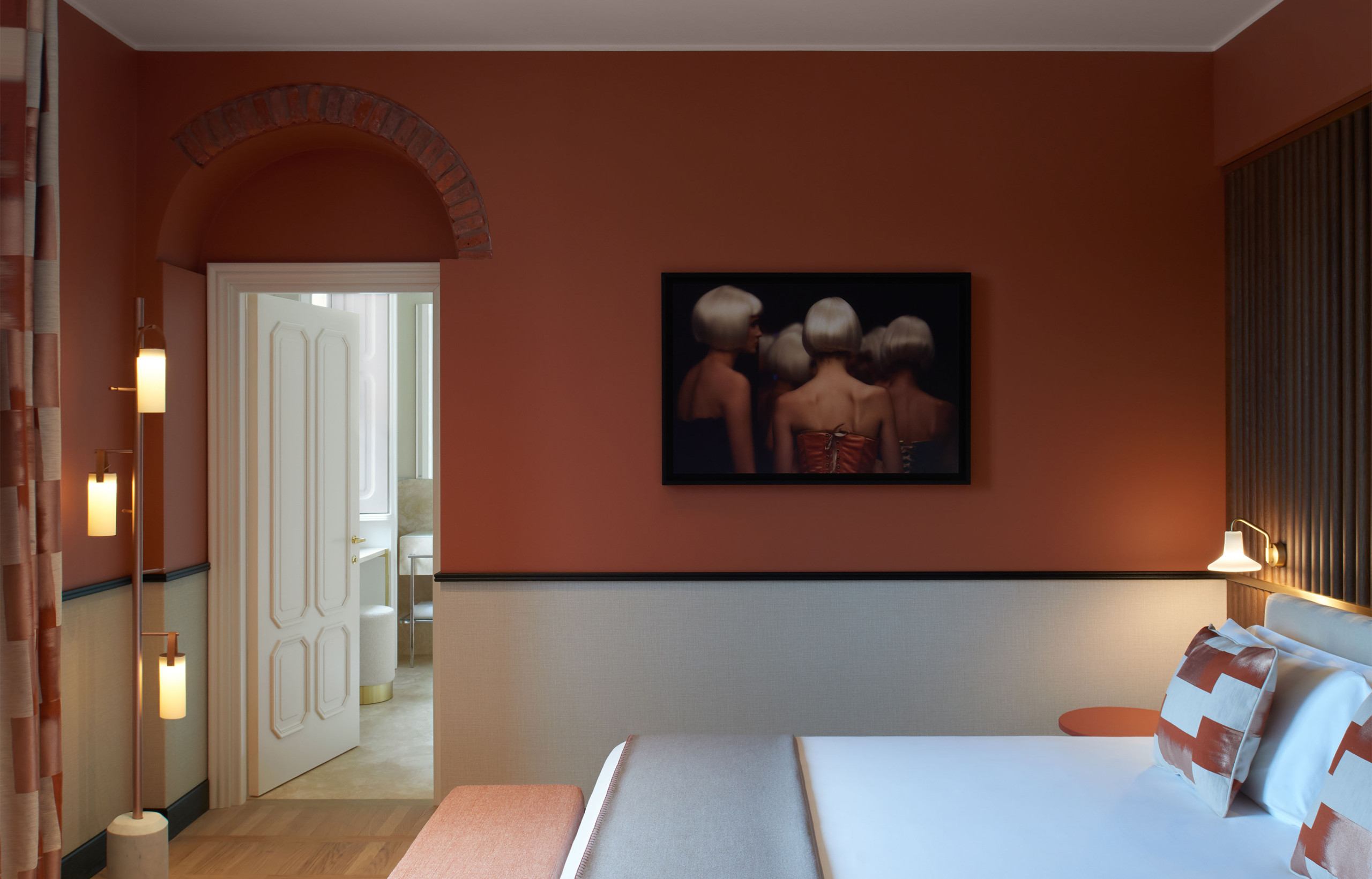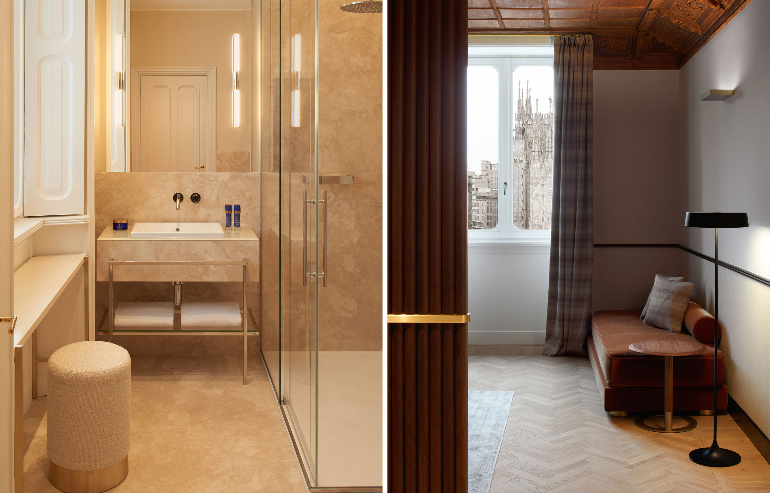 « J’ai voulu créer un petit bijou, dit-il, un lieu capable d’évoquer l’élégance de l’atmosphère milanaise, mais qui exprime aussi une intimité chaleureuse à travers des couleurs, des essences et des tissus sophistiqués. Ici, la tradition de l’élégance milanaise rencontre l’excellence du design made in Italy pour créer une expérience de confort exclusif », explique-t-il. Les noms des quatre suites – Montenapoleone, Triennale, Scala et Aperitivo – rendent hommage à la mode, au design, à la culture et au style sophistiqué de la capitale lombarde.