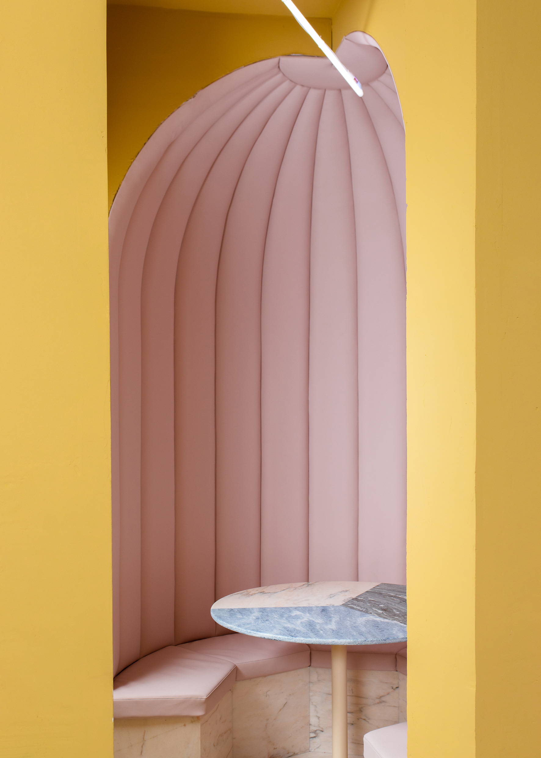 Pour Kubri, comme pour toutes leurs réalisations, les deux membres fondateurs de l’agence Mur.Mur expérimentent. « Chaque chantier est un laboratoire, mais ne le dites pas à nos clients ! » avoue la jeune femme avec un sourire complice. Des « laboratoires » destinés au grand public bien souvent, puisque l’agence Mur.Mur s’est fait connaître avec des projets signatures comme le restaurant Gros Bao, dans le Xe arrondissement de Paris, avec sa terrasse suspendue, sa laque rouge du sol au plafond et une surabondance de lampes…
