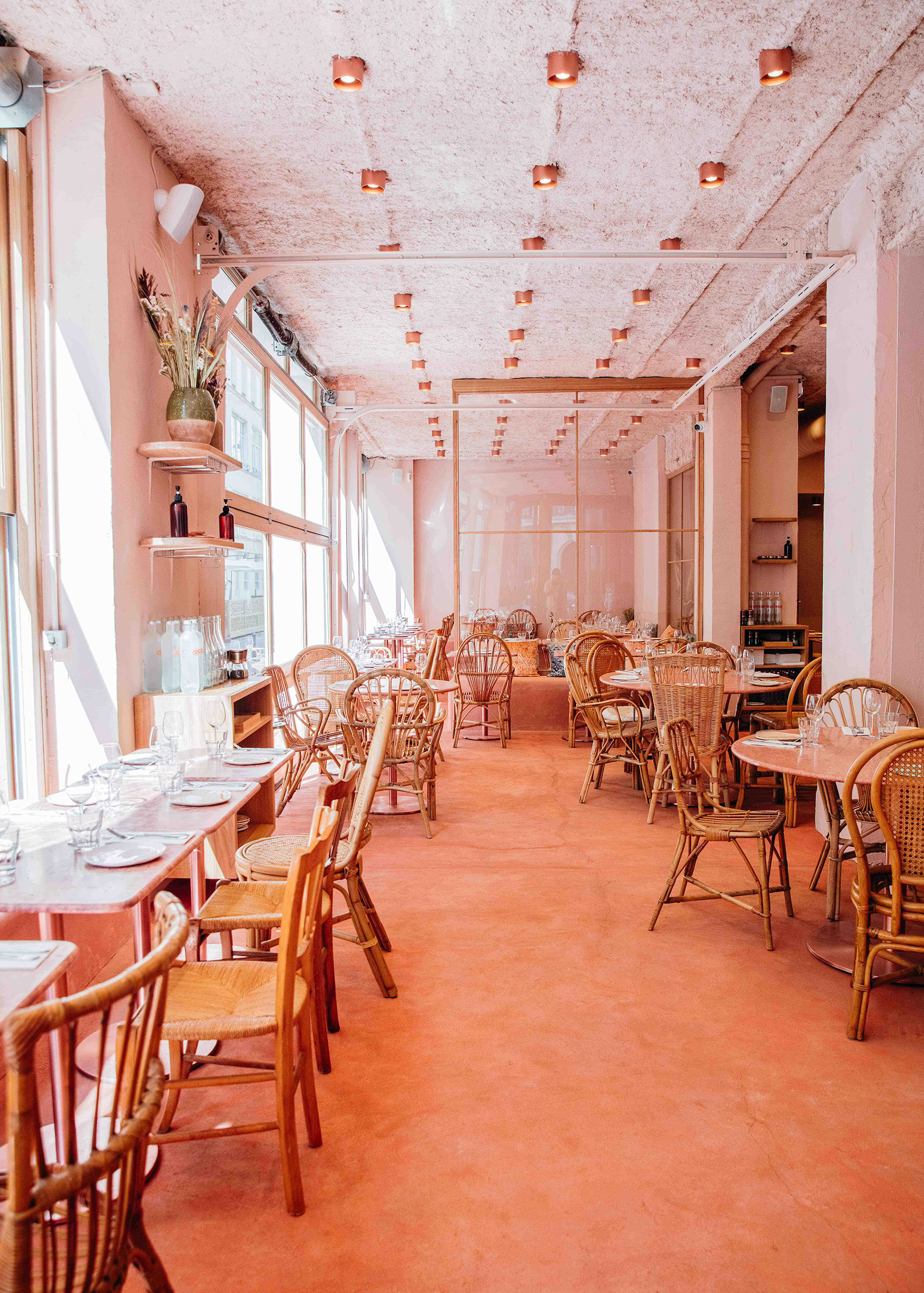 Un exemple ? Le bar en miroir de Kubri a d’abord été imaginé pour refléter la lumière du jour. Une habitude qui vient de leur parcours très technique : lui a développé des gares à l’étranger, un univers « hyper-normé », rappelle-t-il, et elle a démarré sa carrière comme maître d’œuvre dans une entreprise générale de bâtiment. Leur premier projet commun a été la boulangerie Liberté, à Paris, près du canal Saint-Martin, un quartier qui deviendra l’épicentre de leur carrière.